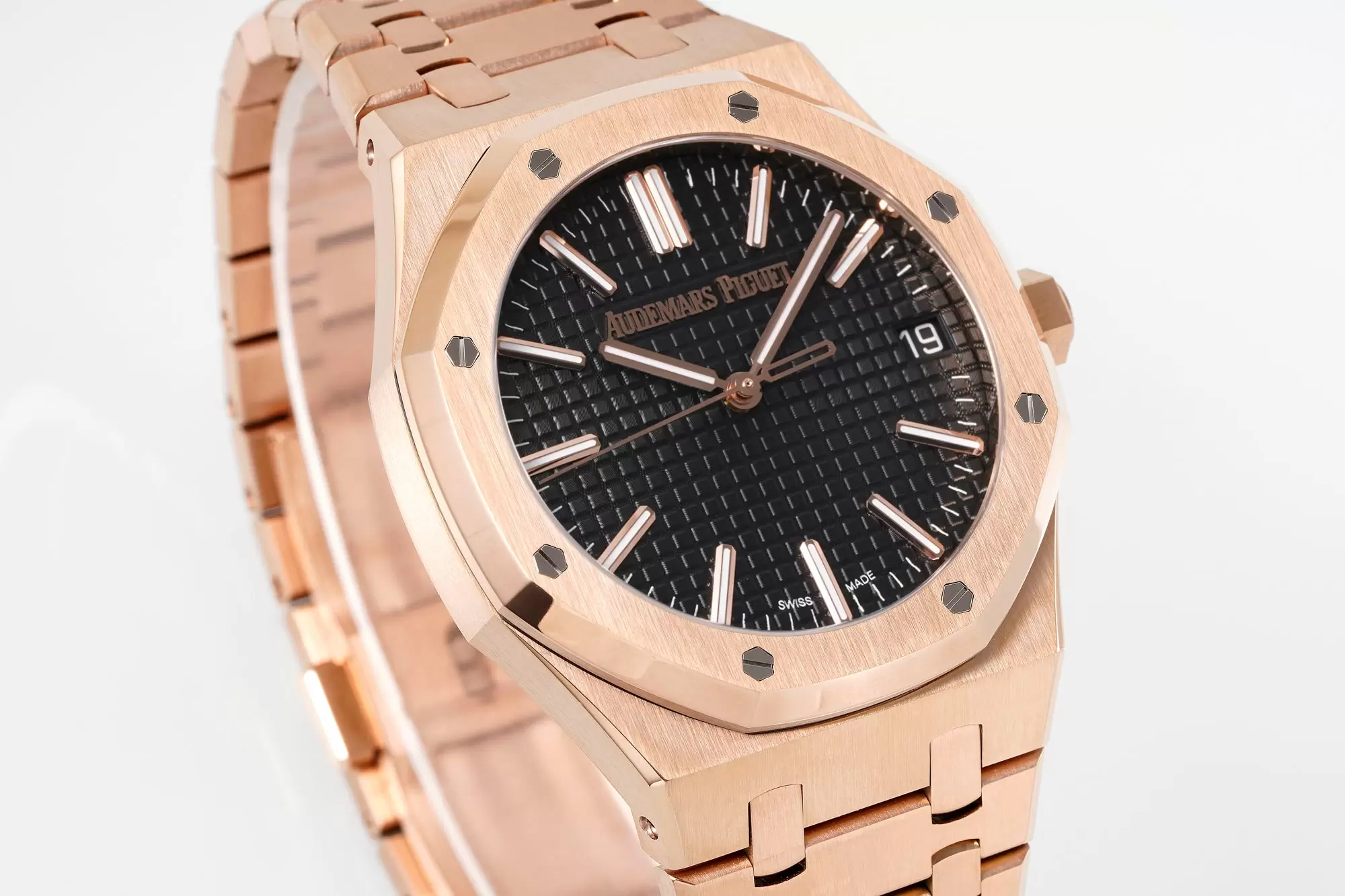 AUDEMARS PIGUET BEST COPIES WATCH ROYAL OAK APS FACTORY ROSE GOLD CASE BLACK DIAL 41MM