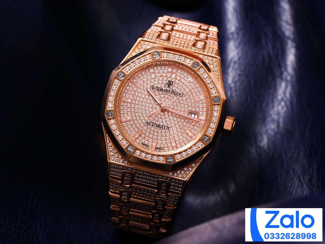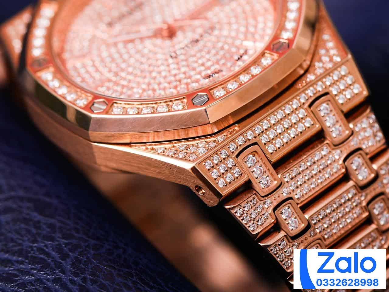 AUDEMARS PIGUET BEST COPIES WATCHES ROYAL OAK 15452 ROSE GOLD FULL RHINESTONE 41MM