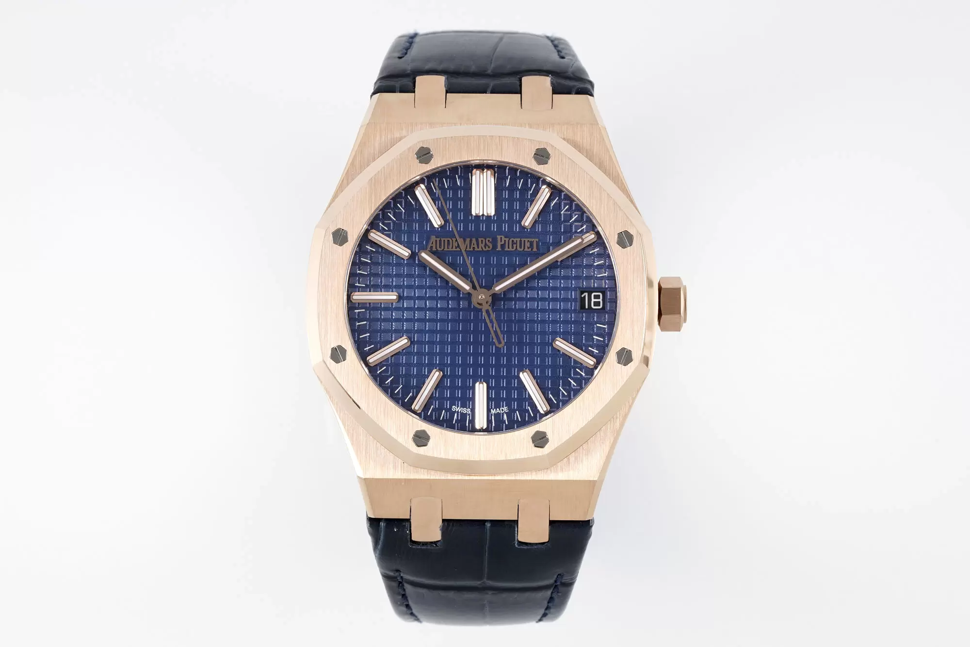 AUDEMARS PIGUET HIGH END WATCH REPLICAS ROYAL OAK APS FACTORY BLUE DIAL LEATHER STRAP 41MM