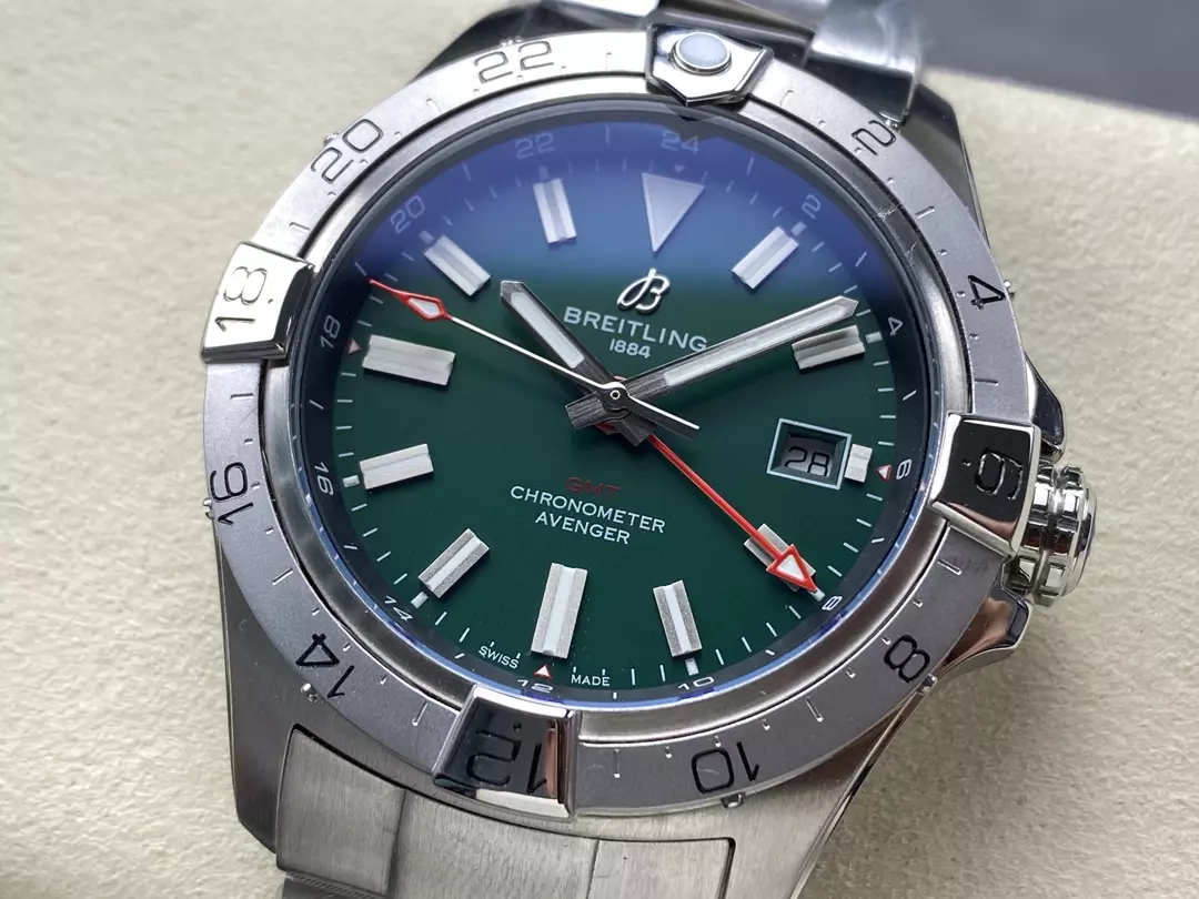 BREITLING 1884 AVENGER GMT FAKE 11 WATCH STEEL STRAP BLS FACTORY 44MM