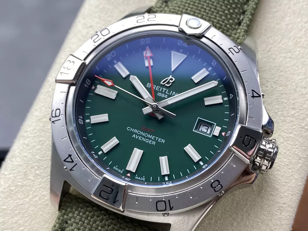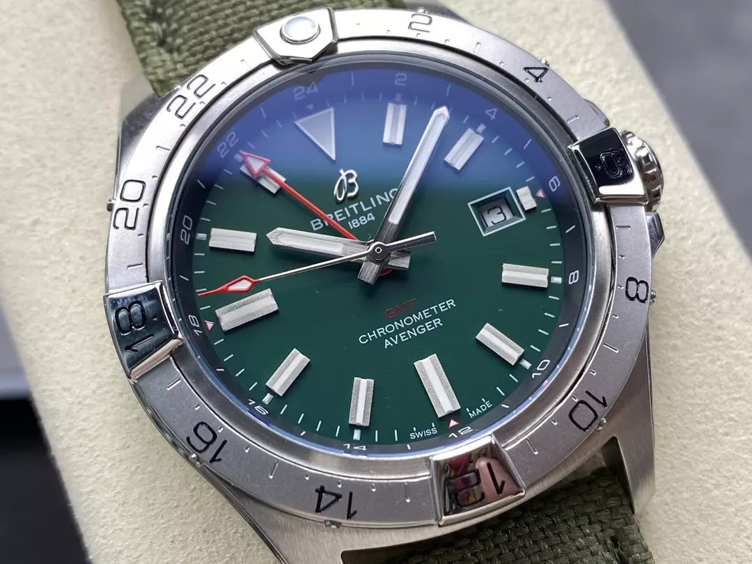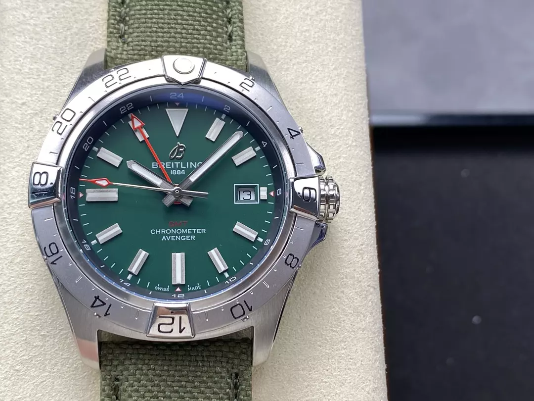 BREITLING 1884 AVENGER GMT REPLICA WATCH GREEN DIAL BLS FACTORY 44MM