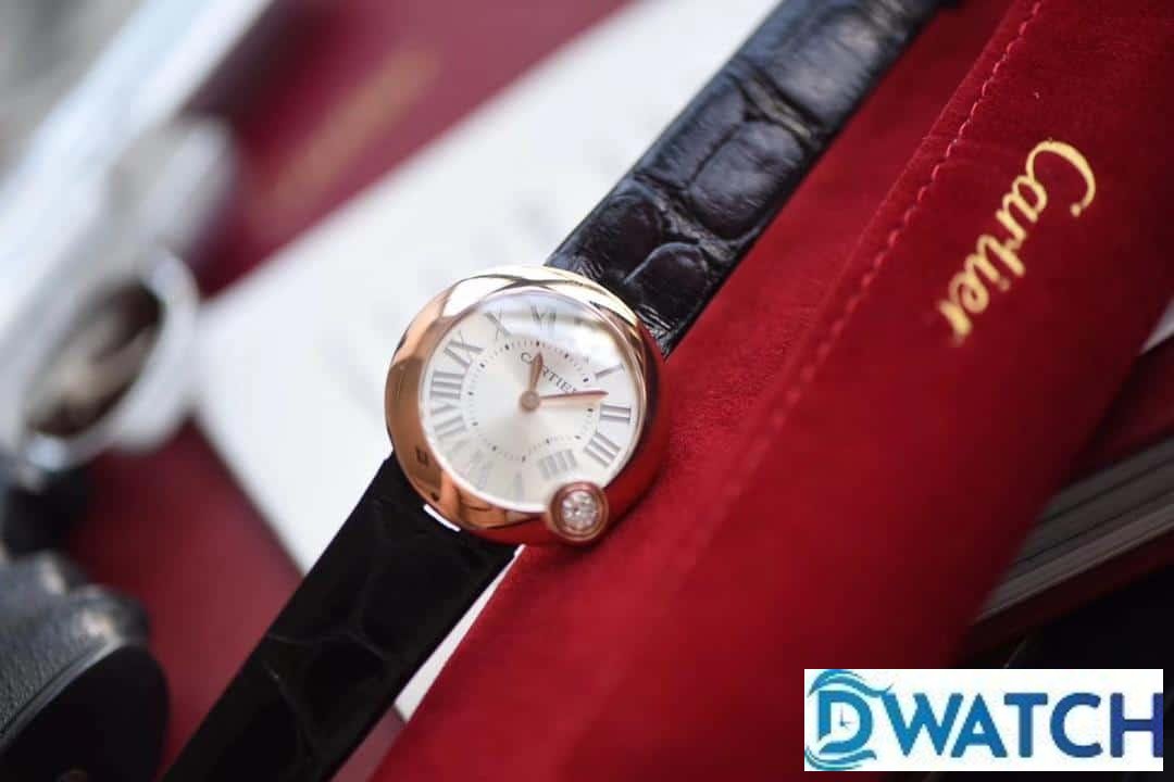 CARTIER BALLON BLANC DE CARTIER WGBL0008 COPIES WATCHES ROSE GOLD CASE BLACK LEATHER STRAP 30MM