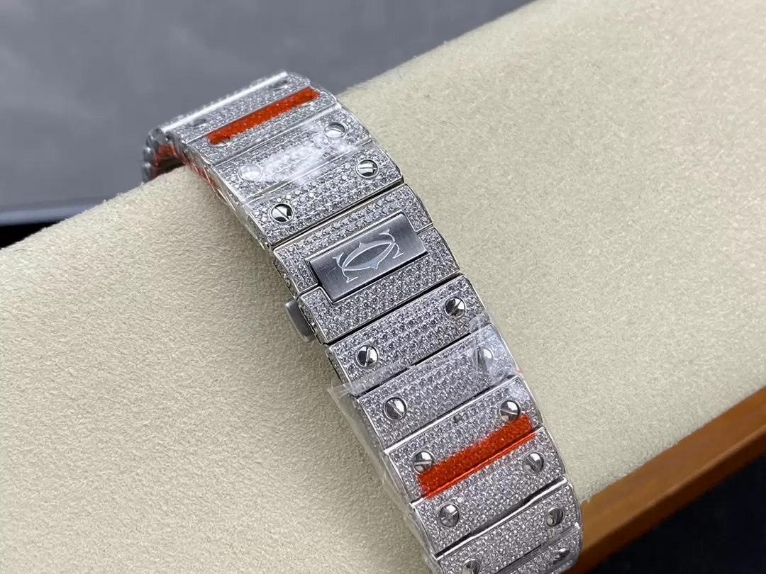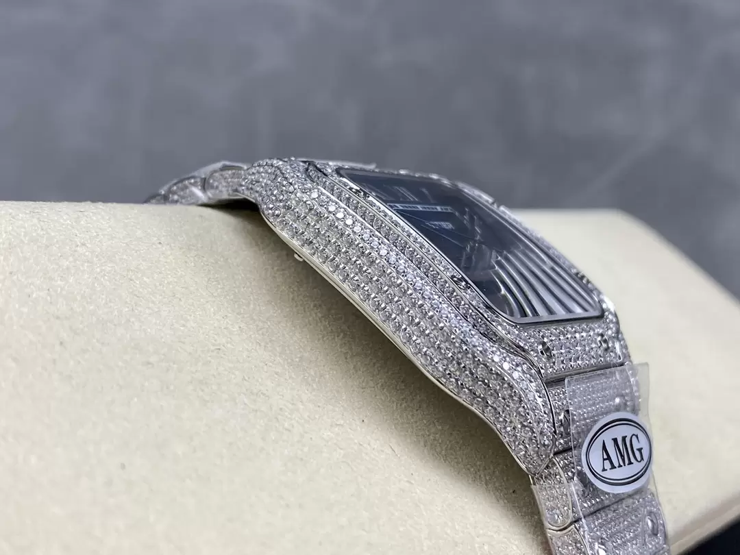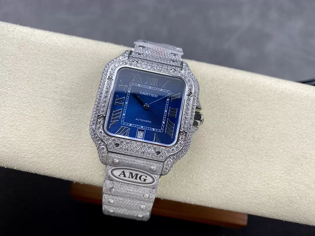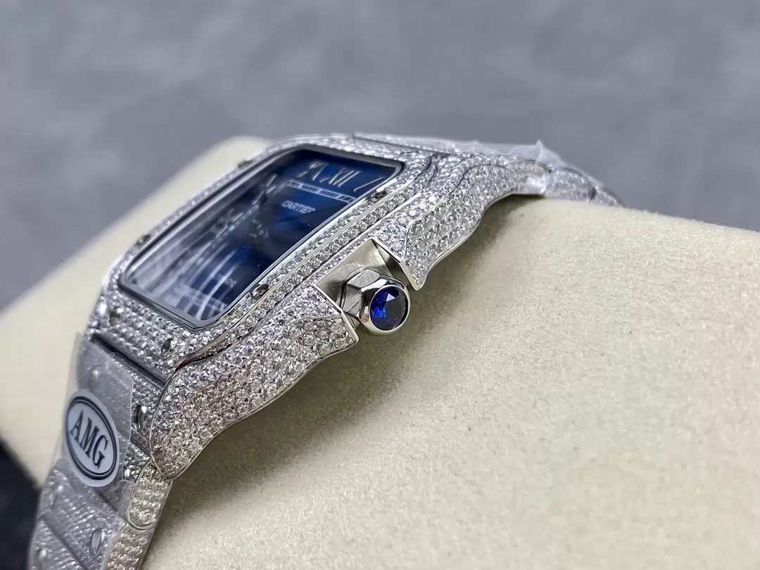 CARTIER SANTOS BEST COPIES WATCHES BLUE DIAL RHINESTONE FULL GEM AMG FACTORY 40MM