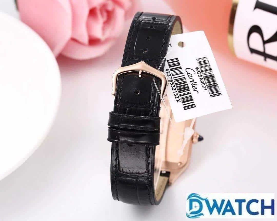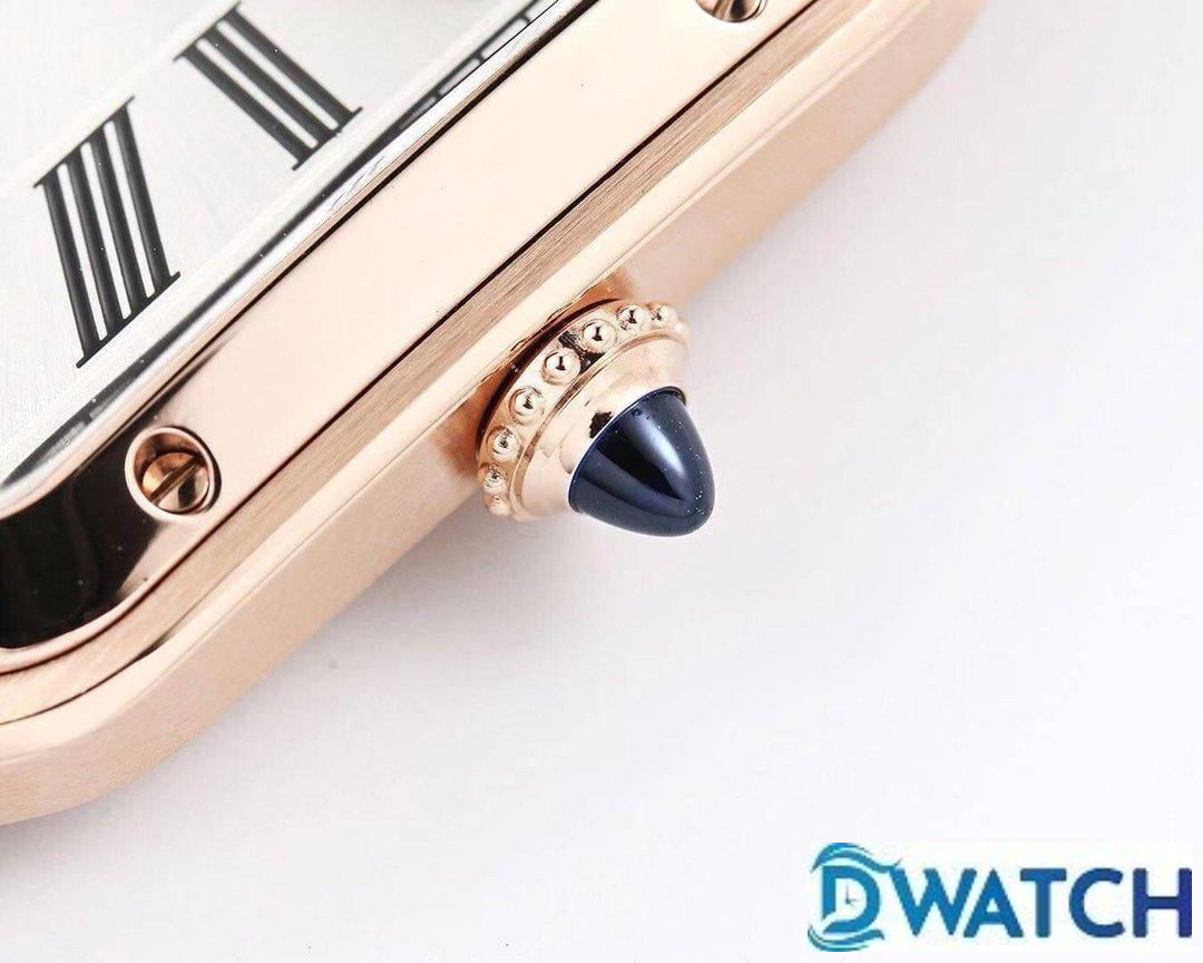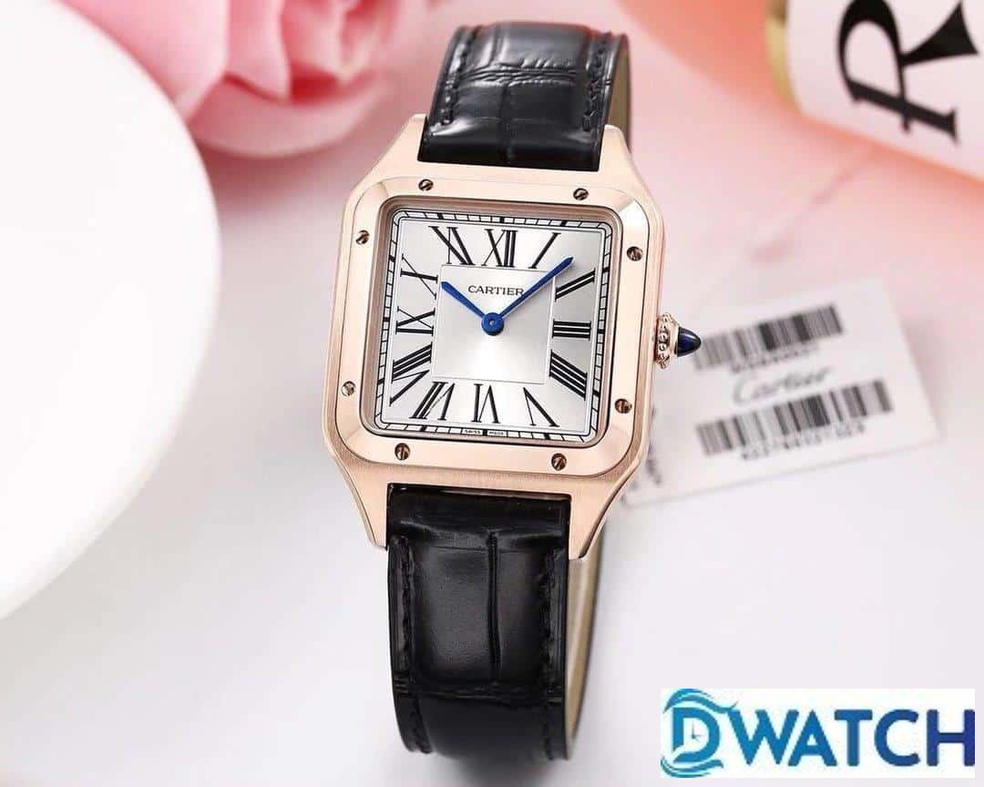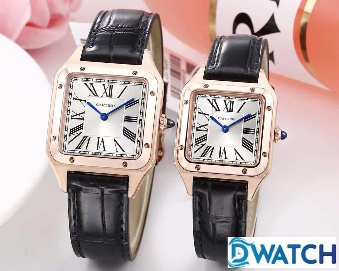 CARTIER SANTOS FOR COUPLE BEST REPLICA WATCHES ROSE GOLD CASE BLACK LEATHER STRAP 27.5 – 45.5MM