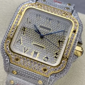 CARTIER SANTOS REPLICA 1:1 WATCH YELLOW GOLD WITH FULL STONE AMG 40MM