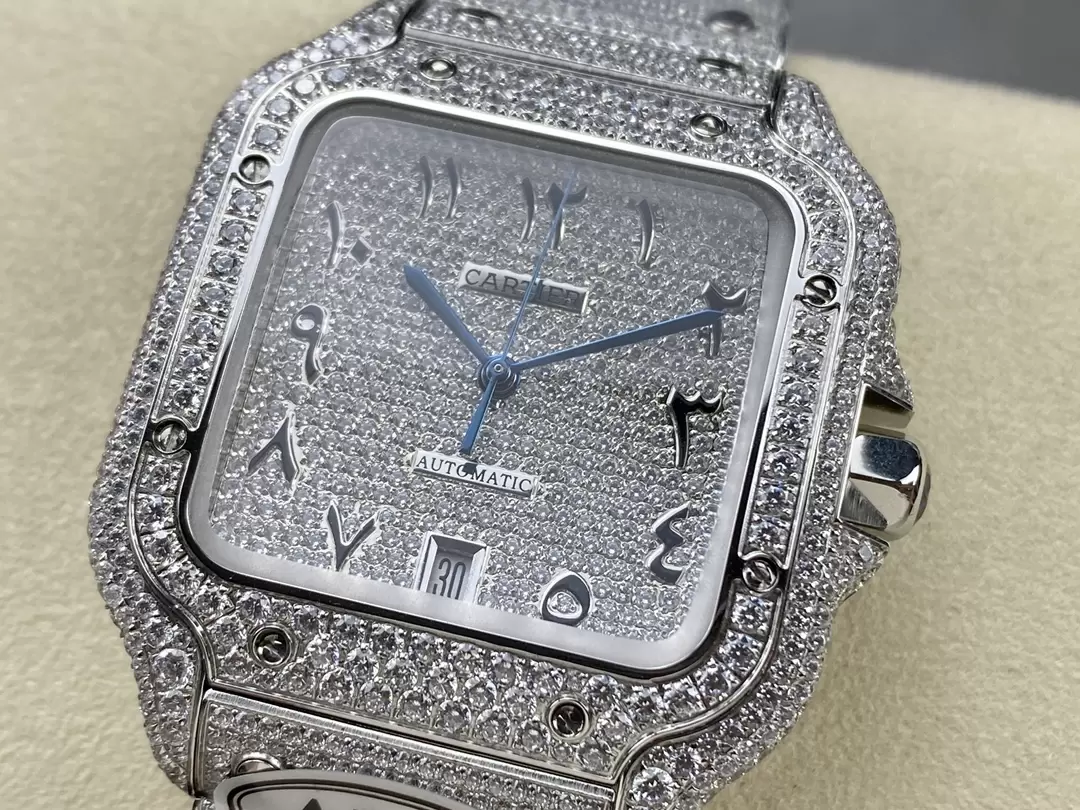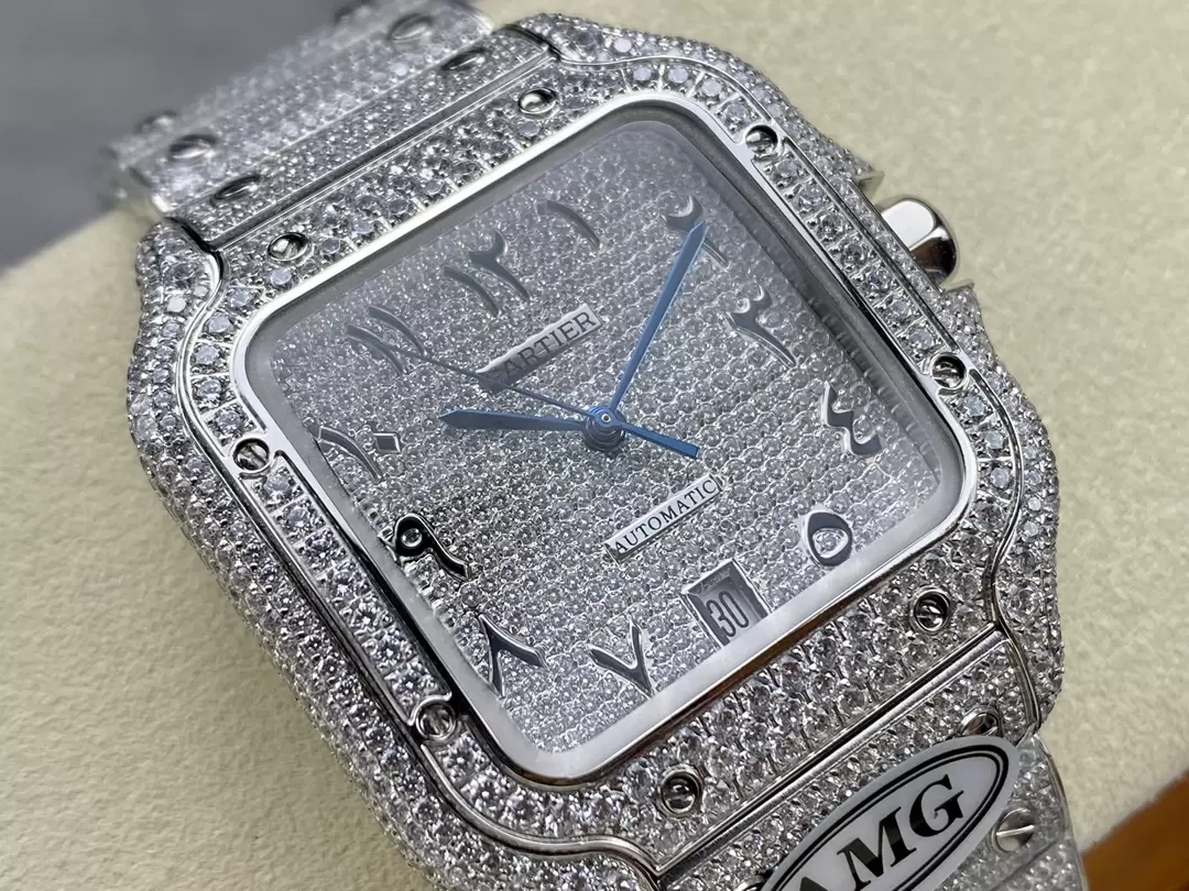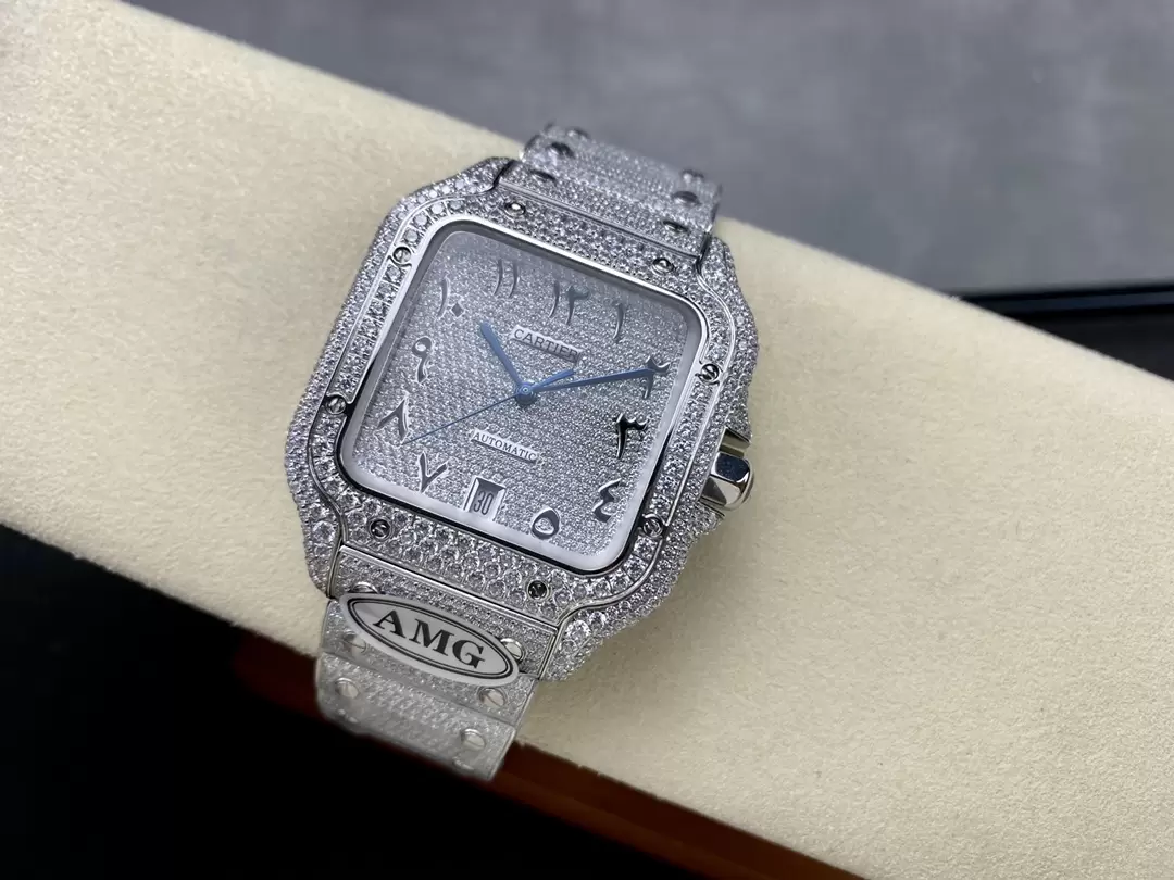 CARTIER SANTOS REPLICA WATCH WITH FULL DIAMOND AMG FACTORY 40MM