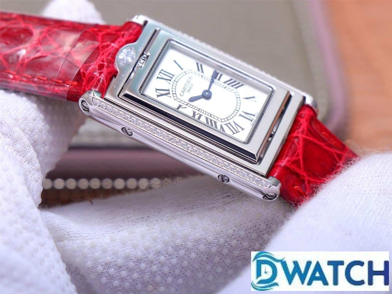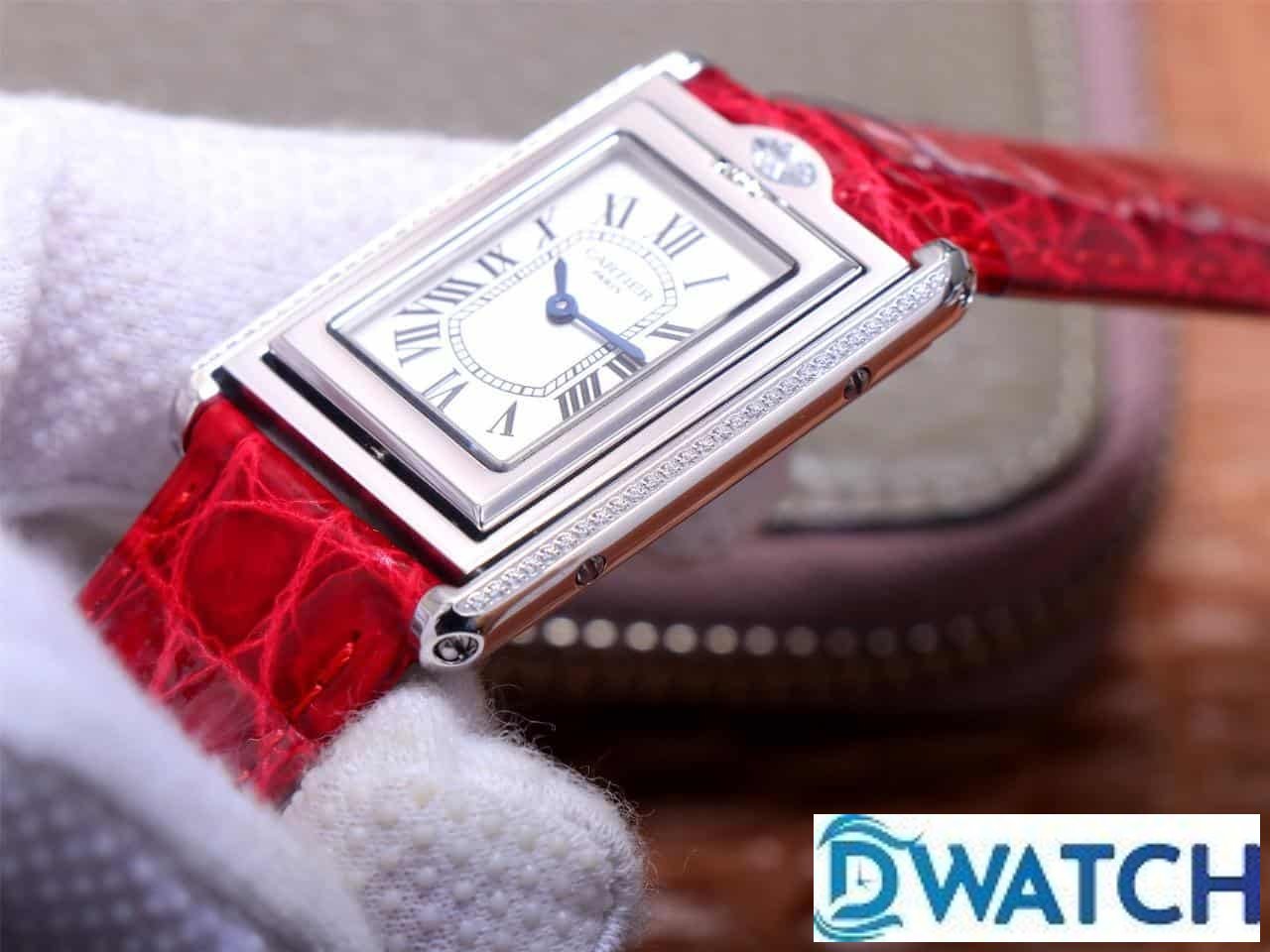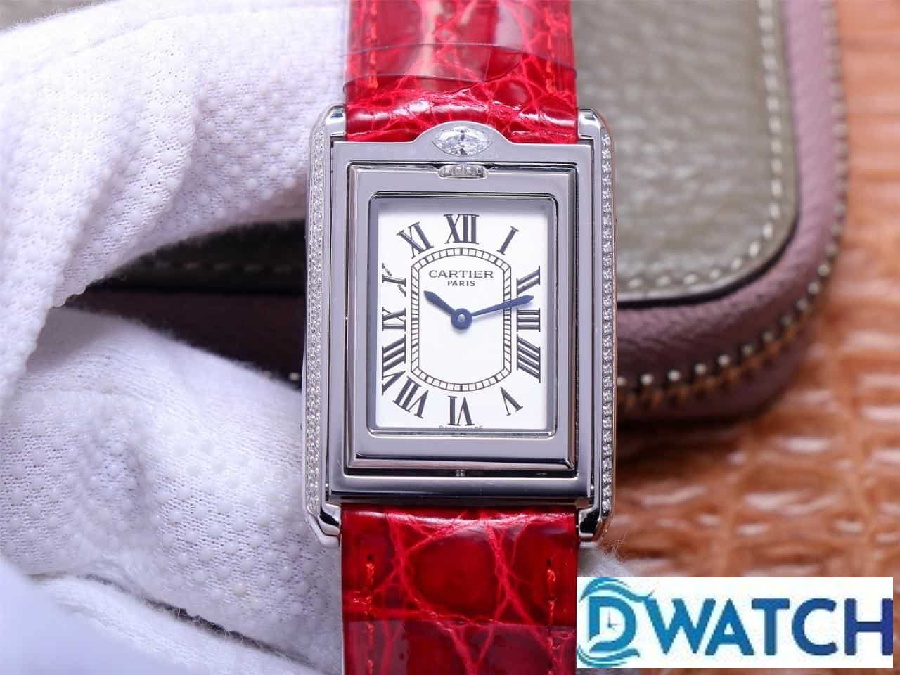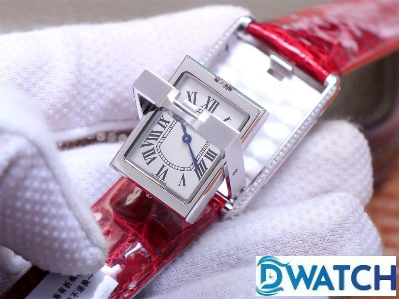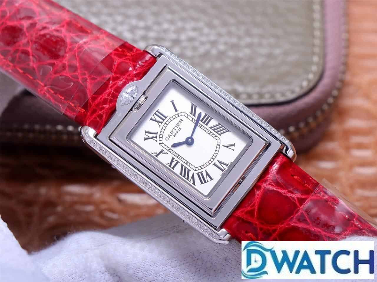CARTIER TANK BASCULANTE BEST COPIES WATCHES 2 FACES SWAP RED LEATHER STRAP AW FACTORY 31MM