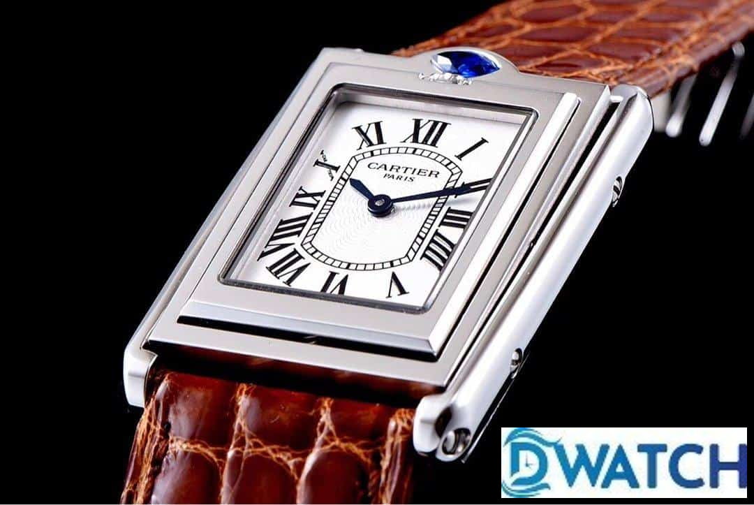 CARTIER TANK BASCULANTE BEST COPIES WATCHES BROWN LEATHER STRAP AW FACTORY 31MM