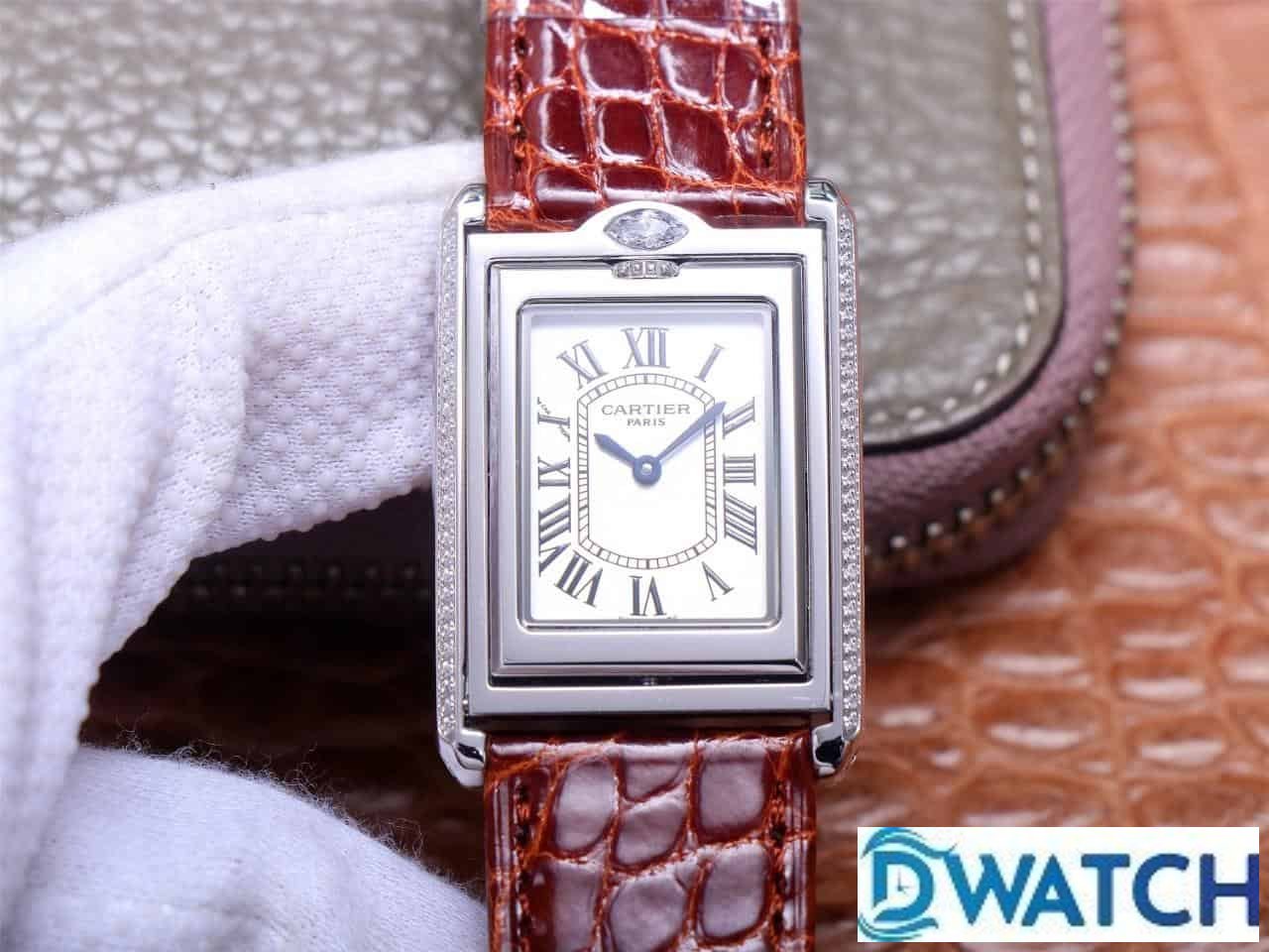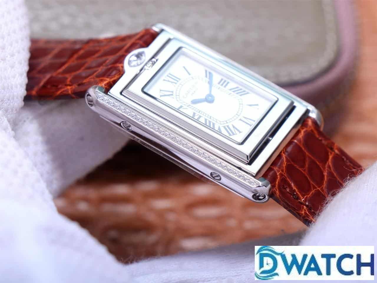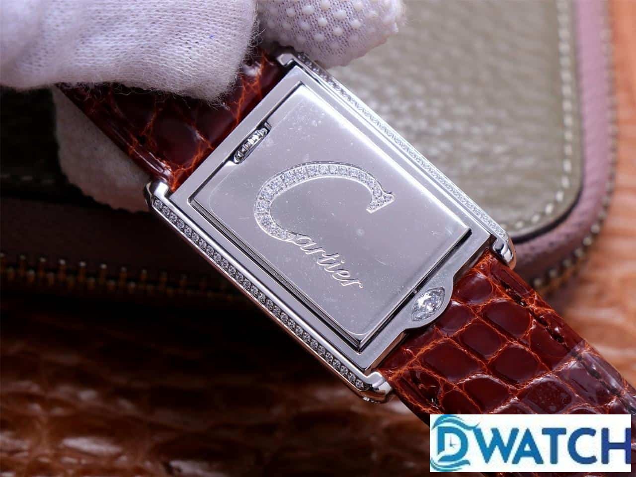 CARTIER TANK BASCULANTE REPLICA WATCHES RED BROWN LEATHER STRAP AW FACTORY 31MM