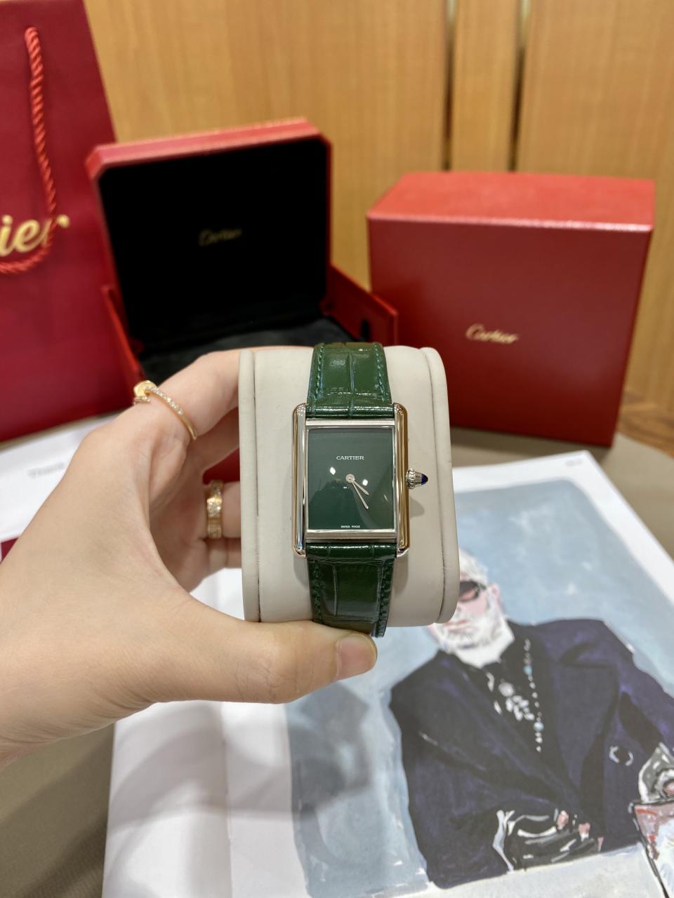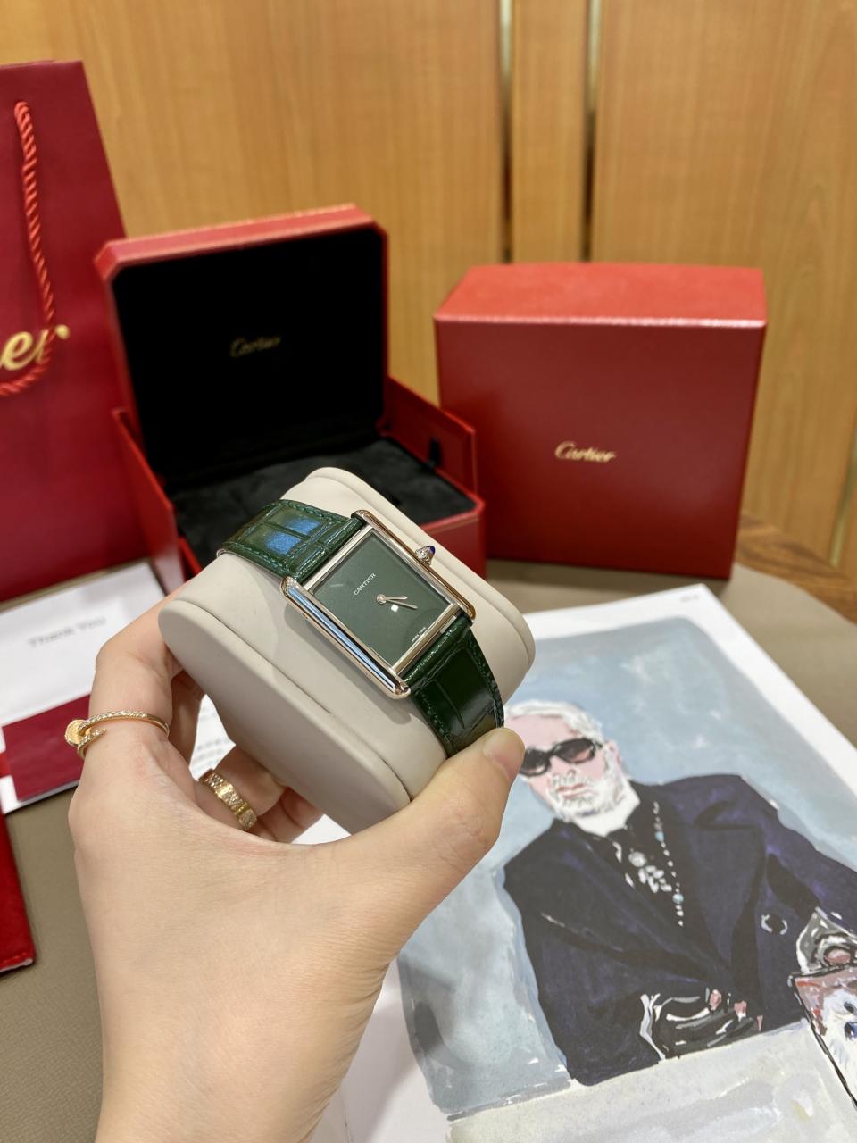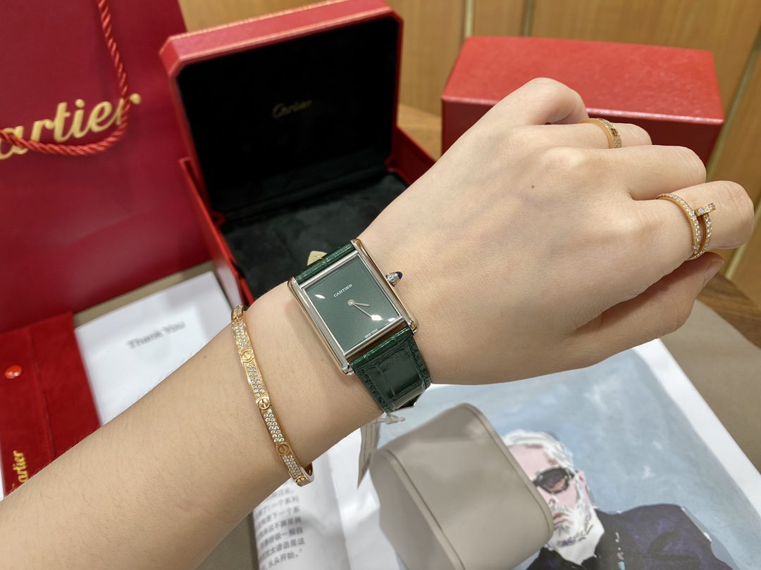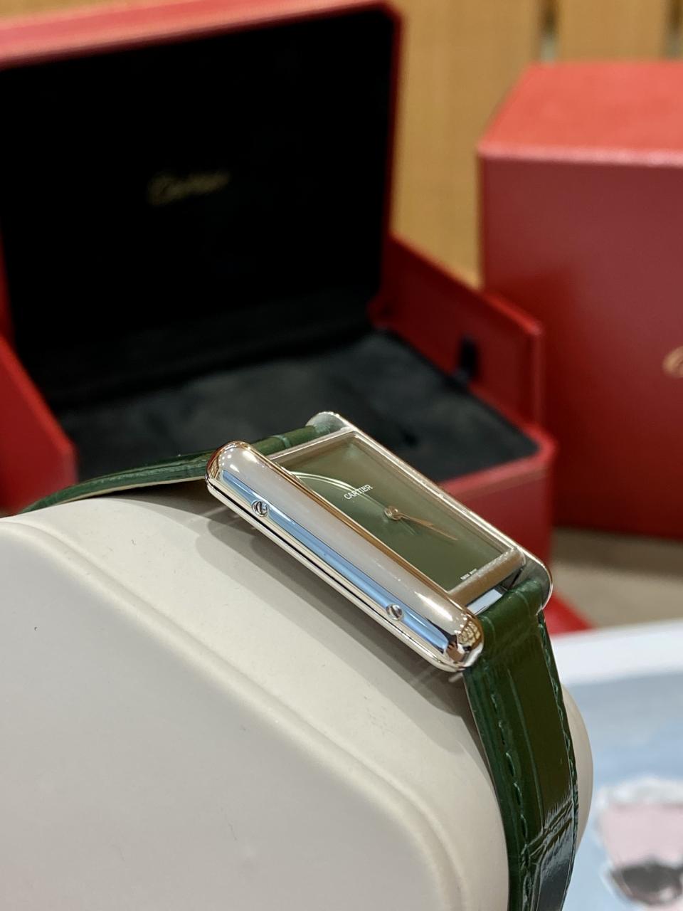 CARTIER TANK MUST WSTA0054 BEST REPLICA WATCHES GREEN DIAL LEATHER STRAP DR FACTORY 25MM