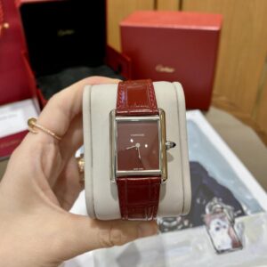 Đặt mua CARTIER TANK MUST WSTA0056 REPLICA WATCHES RED BROWN DIAL LEATHER STRAP DR FACTORY 25MM