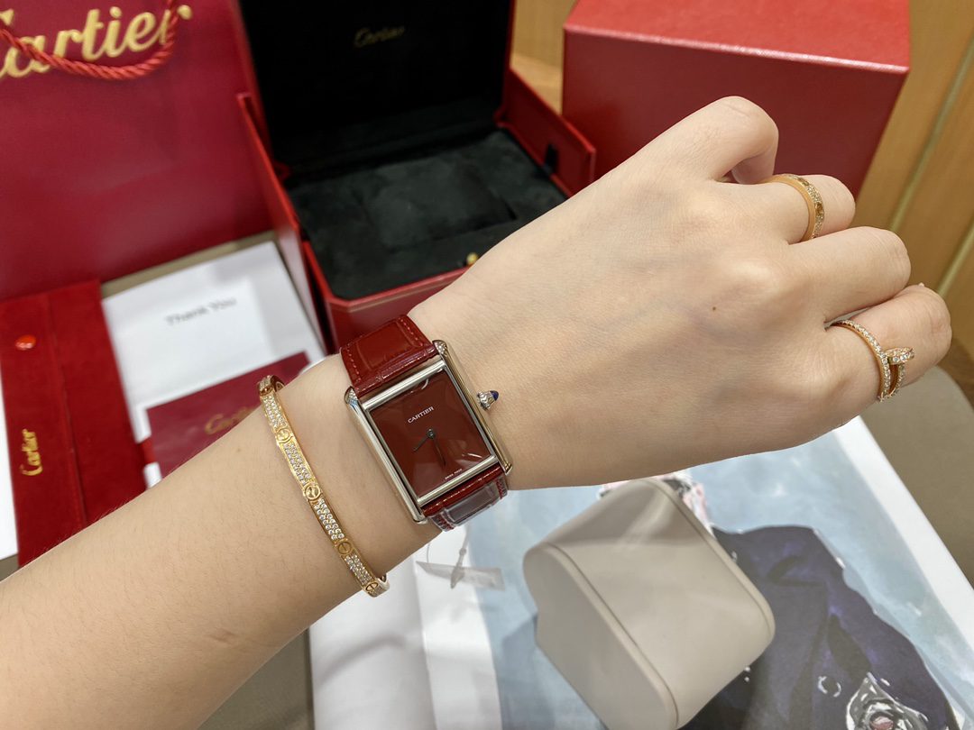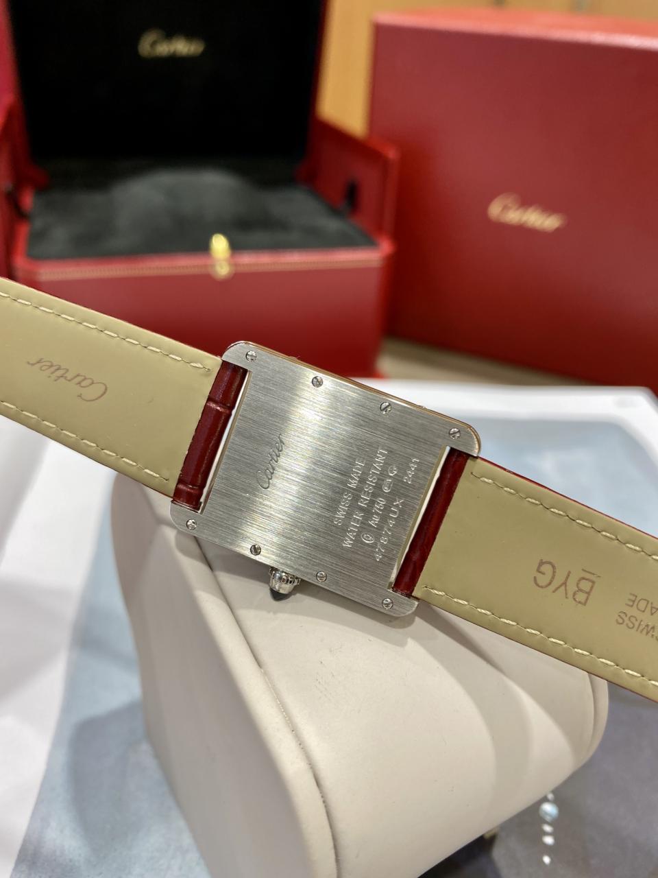CARTIER TANK MUST WSTA0056 REPLICA WATCHES RED BROWN DIAL LEATHER STRAP DR FACTORY 25MM