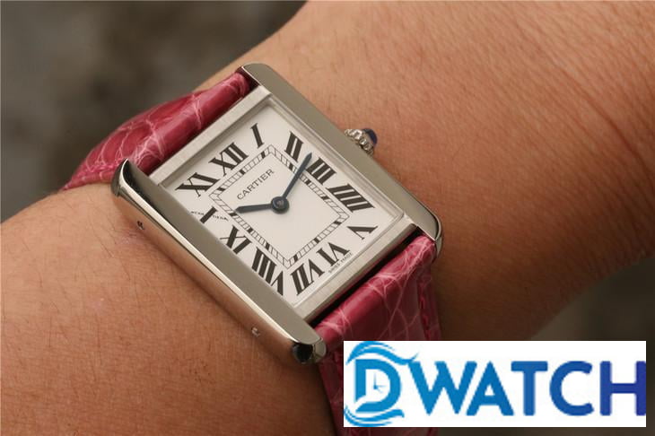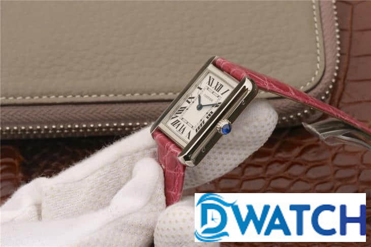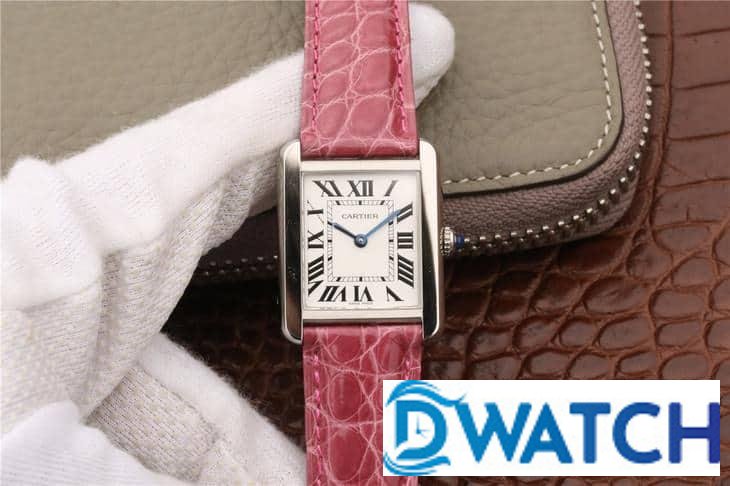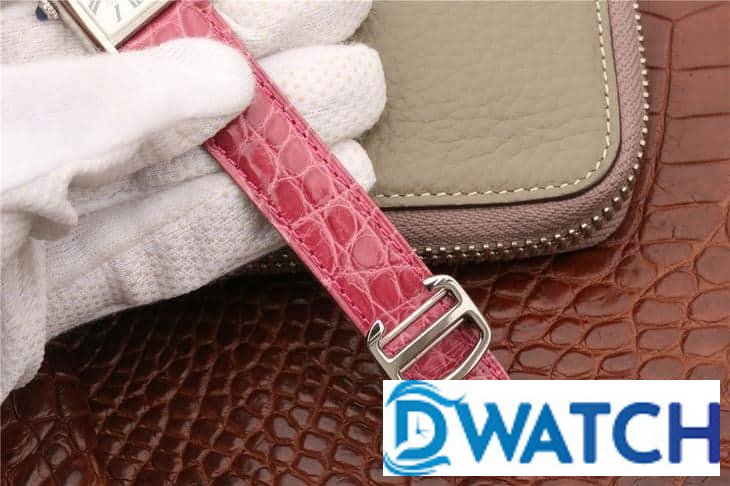 CARTIER TANK REPLICA WATCH STAINLESS STEEL PINK LEATHER STRAP 33X27MM