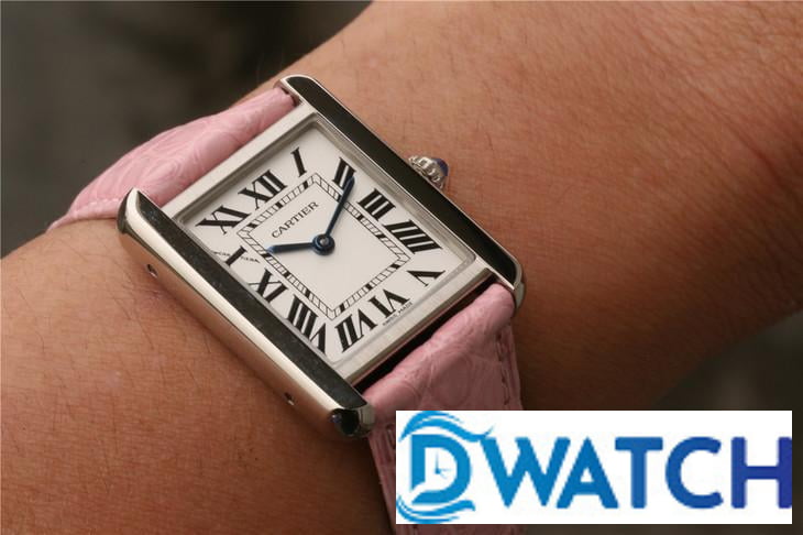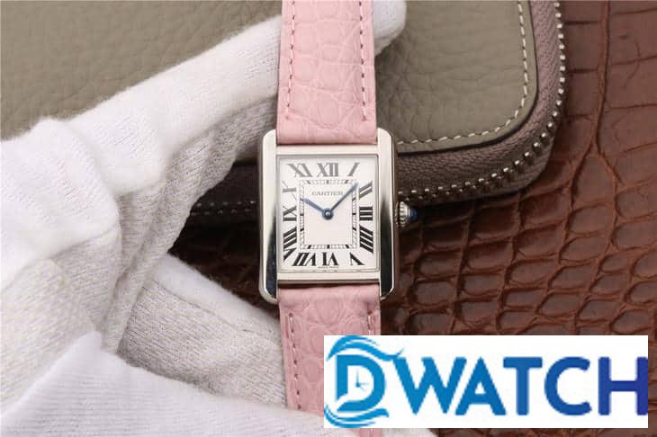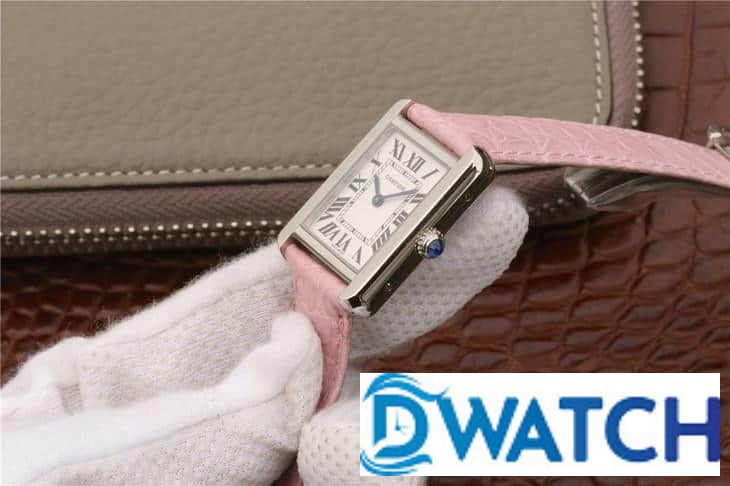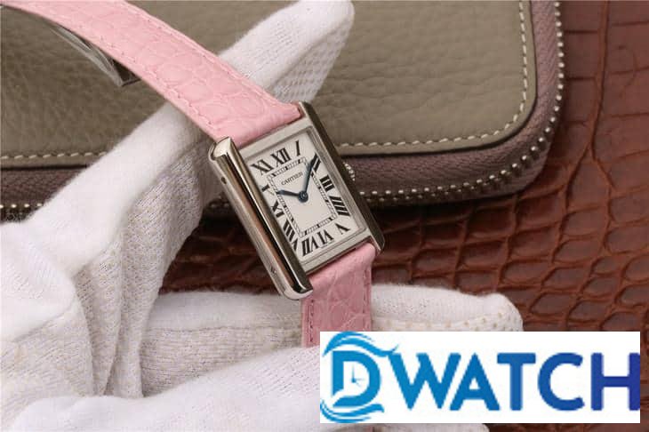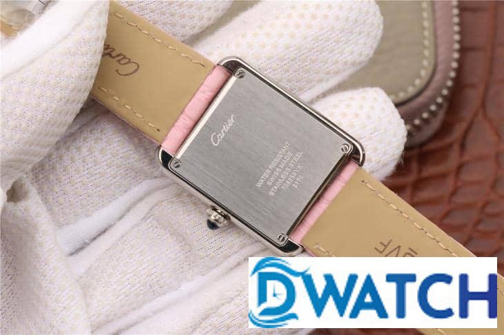 CARTIER TANK REPLICA WATCHES STAINLESS STEEL PINK LEATHER STRAP 33X27MM