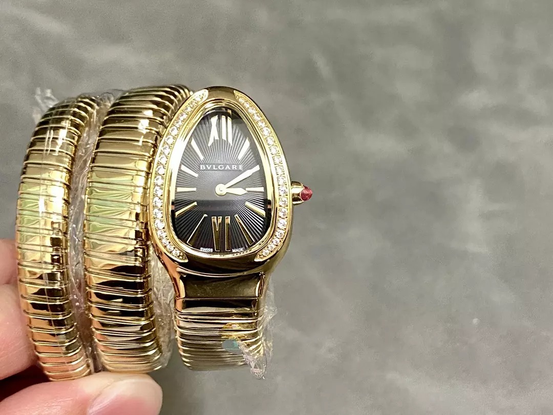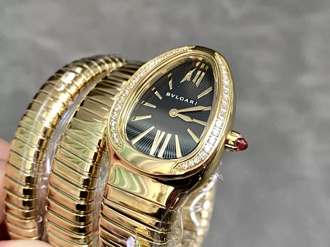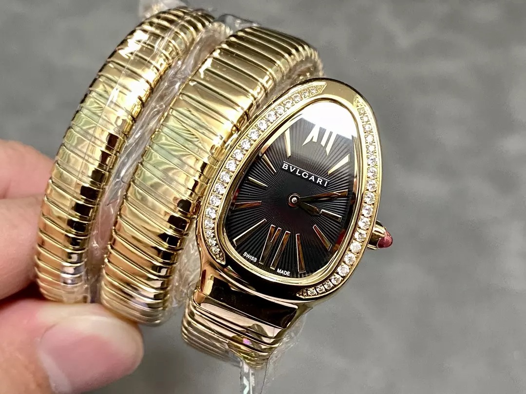 ĐỒNG HỒ BVLGARI REPLICA MẠ VÀNG VÀNG MẶT ĐEN NHÀ MÁY BV 35MM