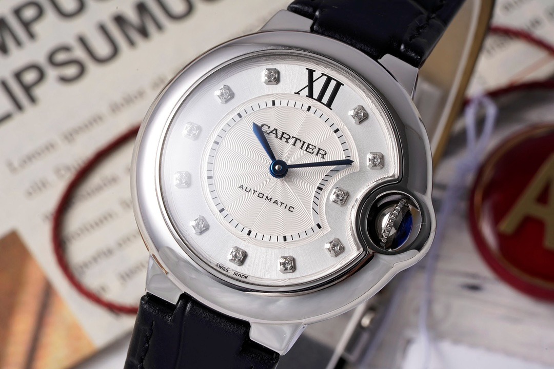 ĐỒNG HỒ CARTIER BLUE BALLOON REPLICA CỌC KIM DÂY DA NHÀ MÁY AF 33MM