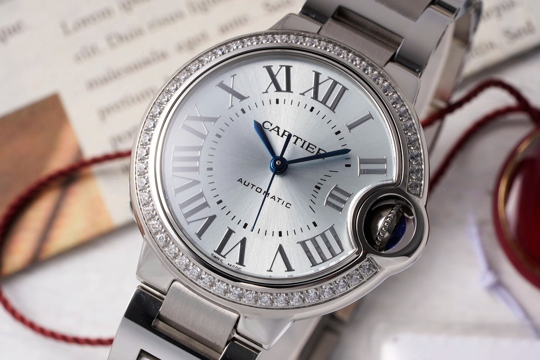 ĐỒNG HỒ CARTIER BLUE BALLOON REPLICA MẶT BẠC SỐ LA MÃ NHÀ MÁY AF 33MM