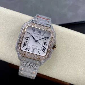 ĐỒNG HỒ CARTIER SANTOS DEMI ROSE GOLD REP 1:1 ĐÍNH FULL ĐÁ AMG FACTORY 40MM