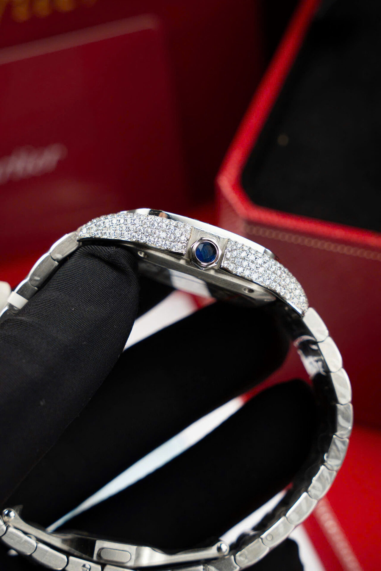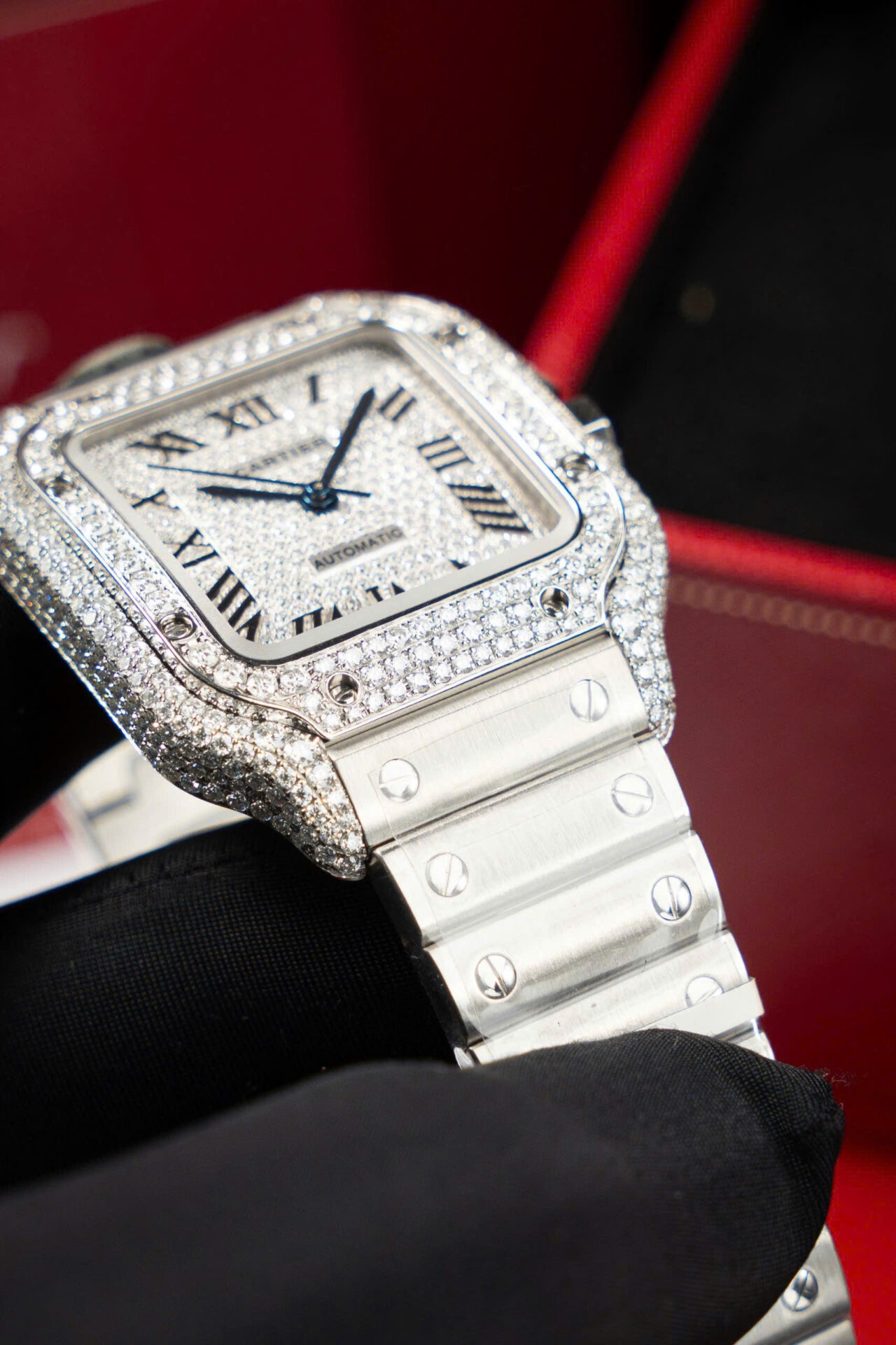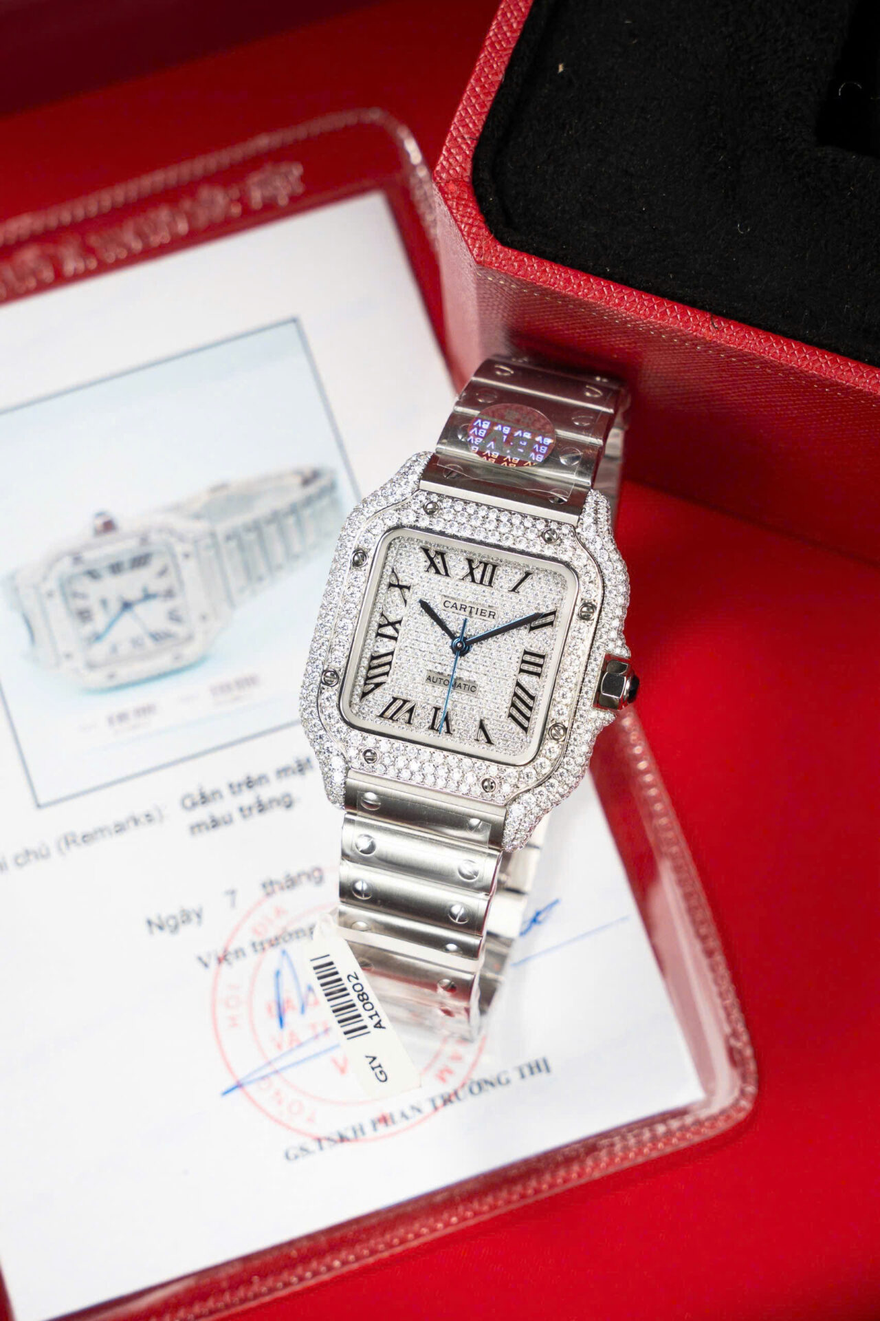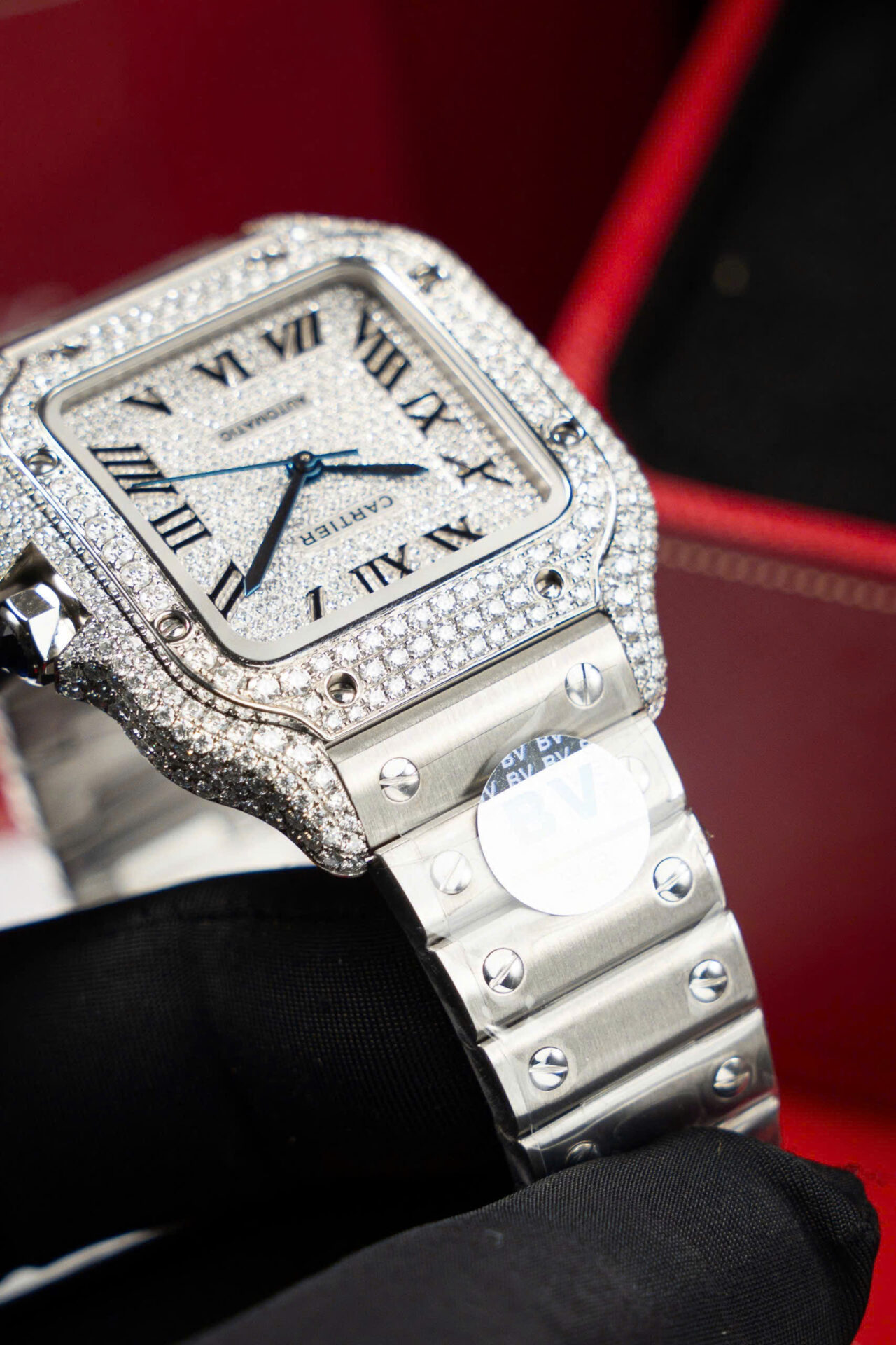 ĐỒNG HỒ CARTIER SANTOS NỮ ĐỘ KIM CƯƠNG MOISSANITE NHÀ MÁY BV 35MM