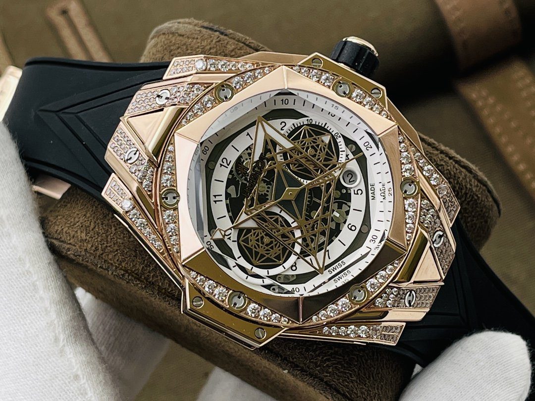 ĐỒNG HỒ CƠ NAM ĐÍNH ĐÁ HUBLOT BIG BANG SANG BLEU ll KING GOLD REP 1:1 CAO CẤP 45MM