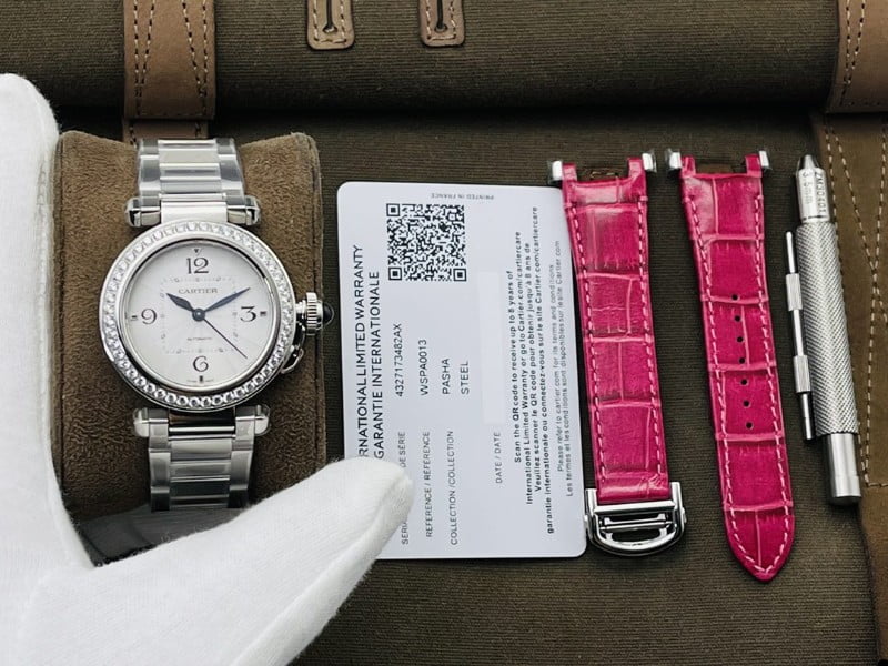 ĐỒNG HỒ DÂY THÉP CARTIER PASHA WSPA0013 REPLICA 11 FACTORY 35MM