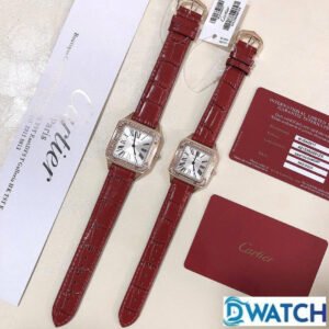 ĐỒNG HỒ ĐÔI CARTIER SANTOS SUPER FAKE NHÀ MÁY F1 DÂY ĐA ĐÍNH ĐÁ 27.5-43.5MM