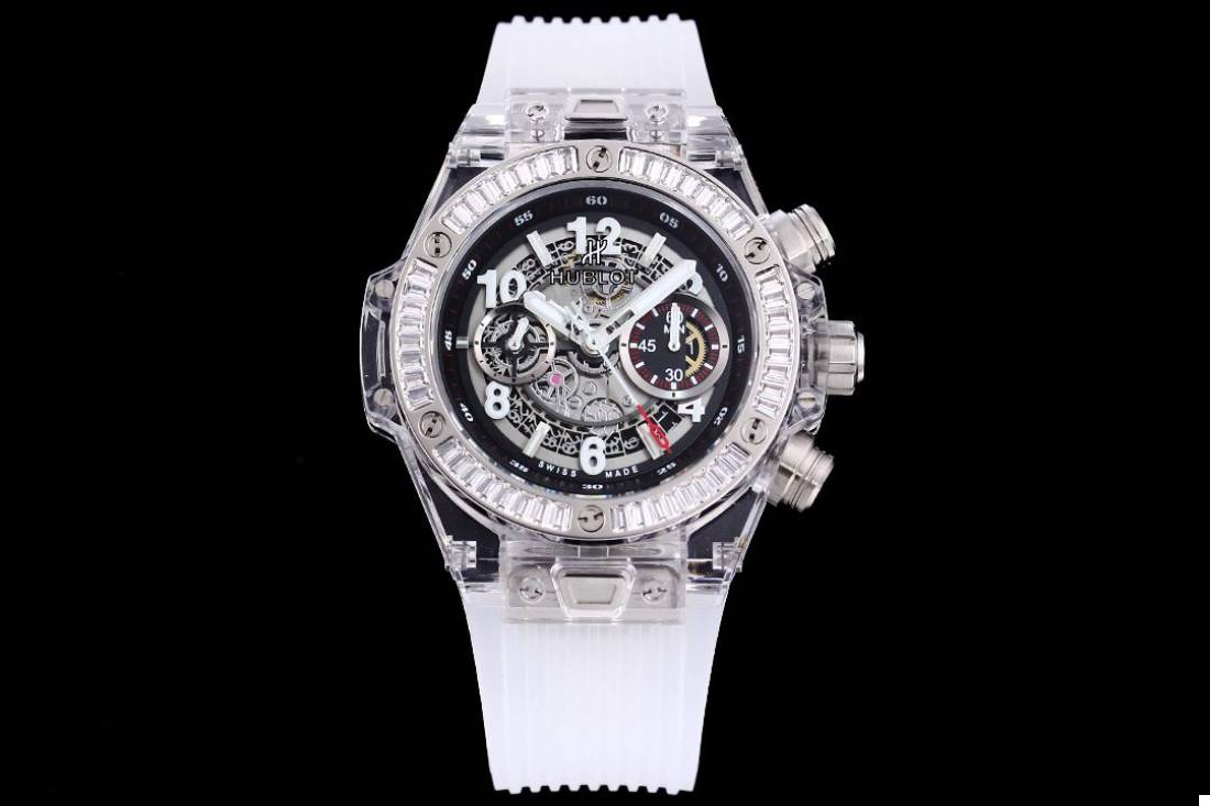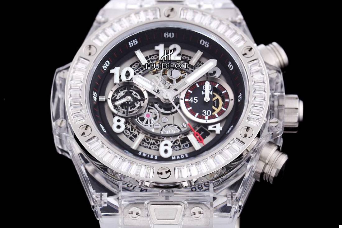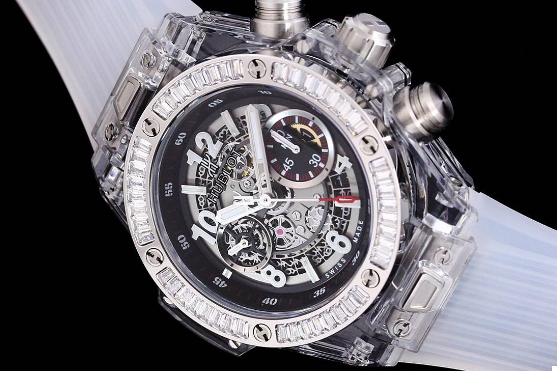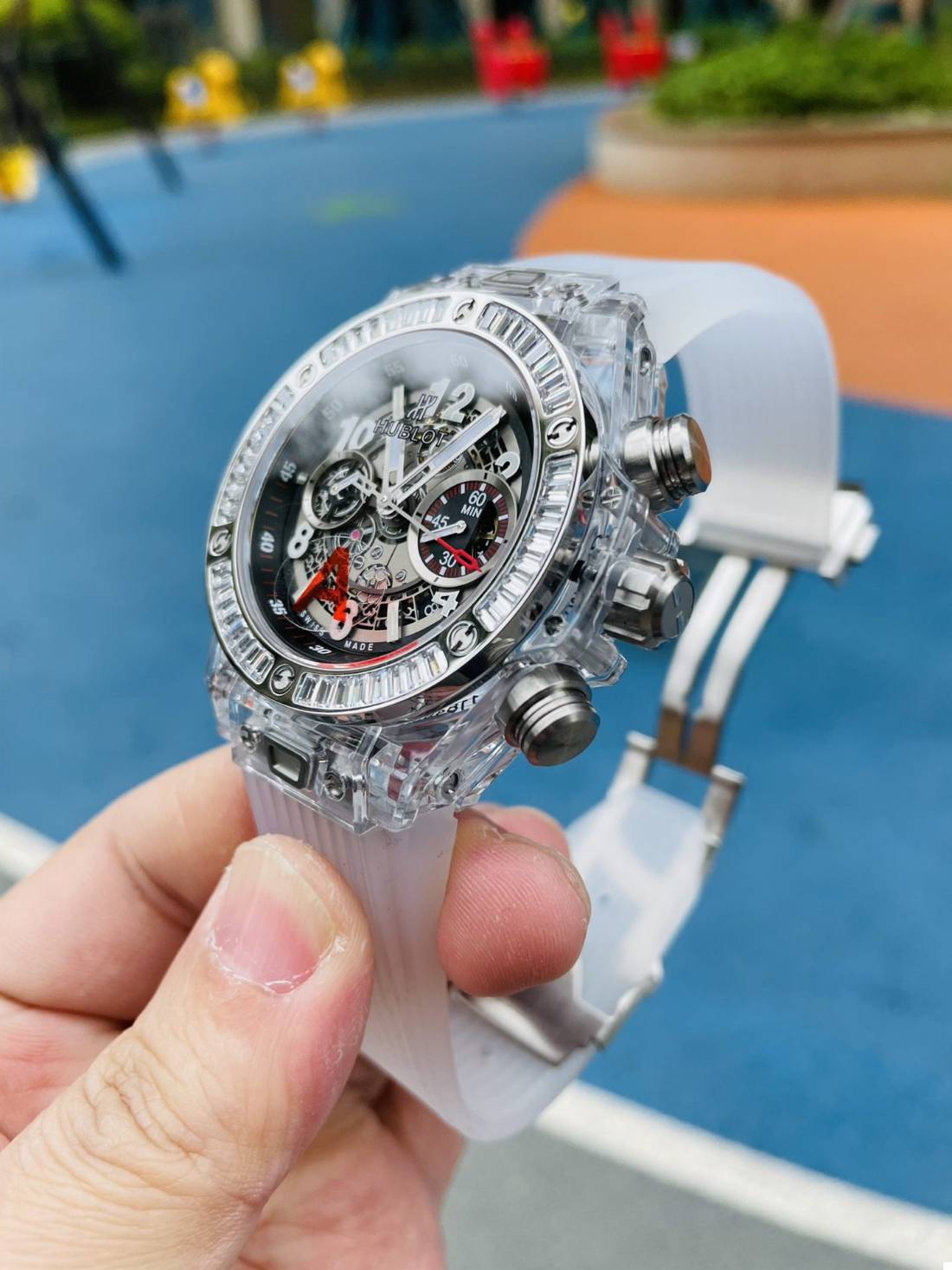 ĐỒNG HỒ HUBLOT BIG BANG 411.JX.1170.RX DÂY “TRONG SUỐT” REPLICA 11 THỤY SỸ 45MM