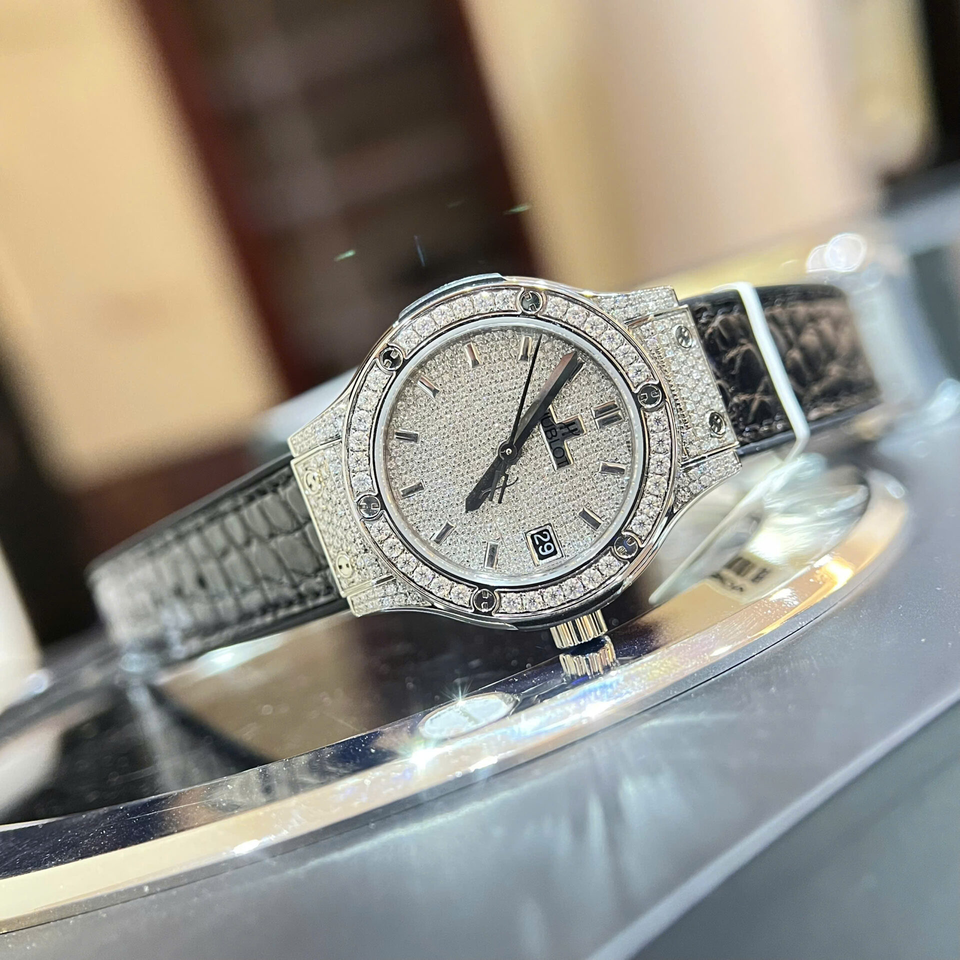 Đồng Hồ Hublot Classic Fusion Diamonds Pavé Đính Full Kim Cương Moissanite Máy Pin 33mm