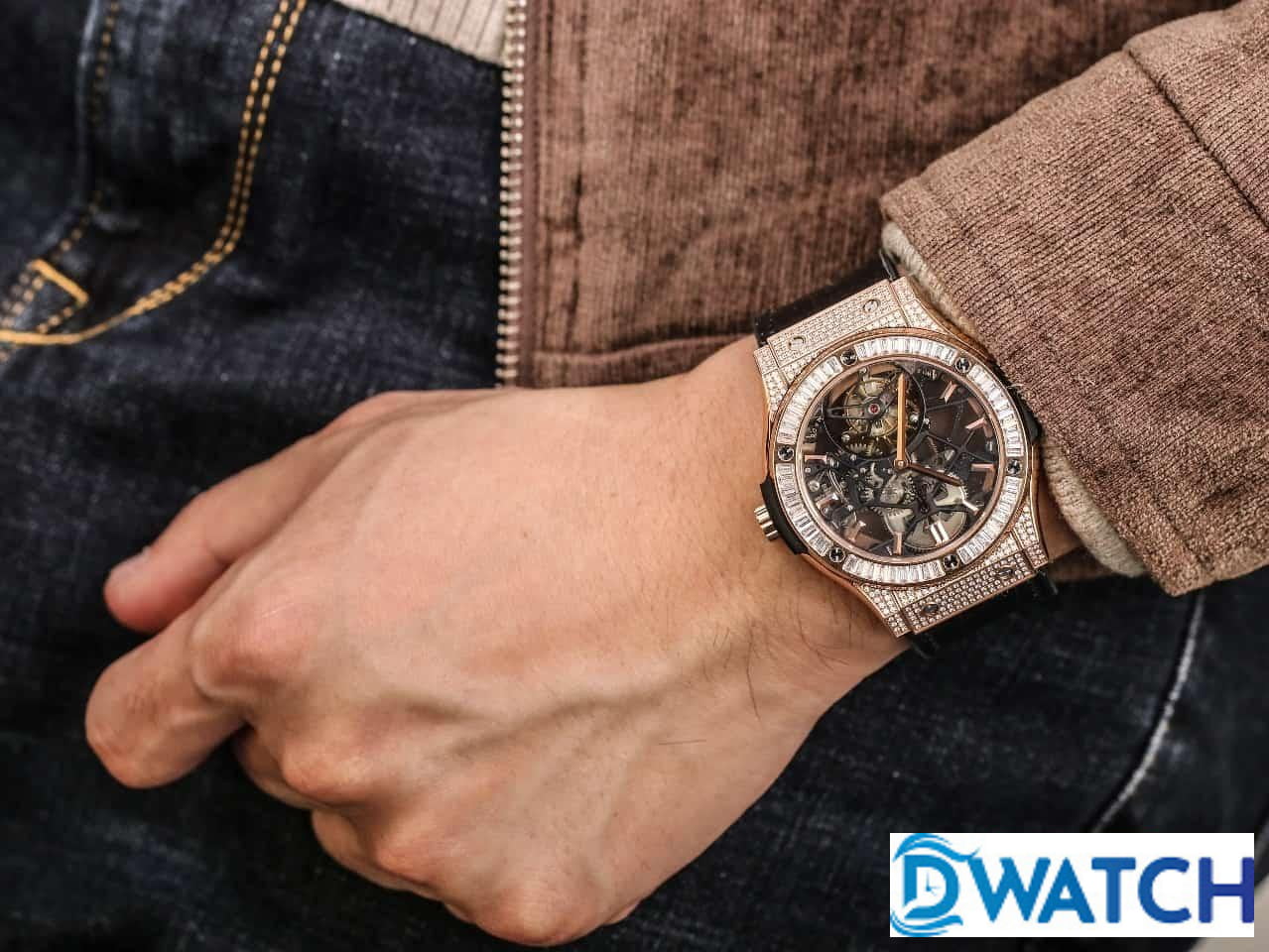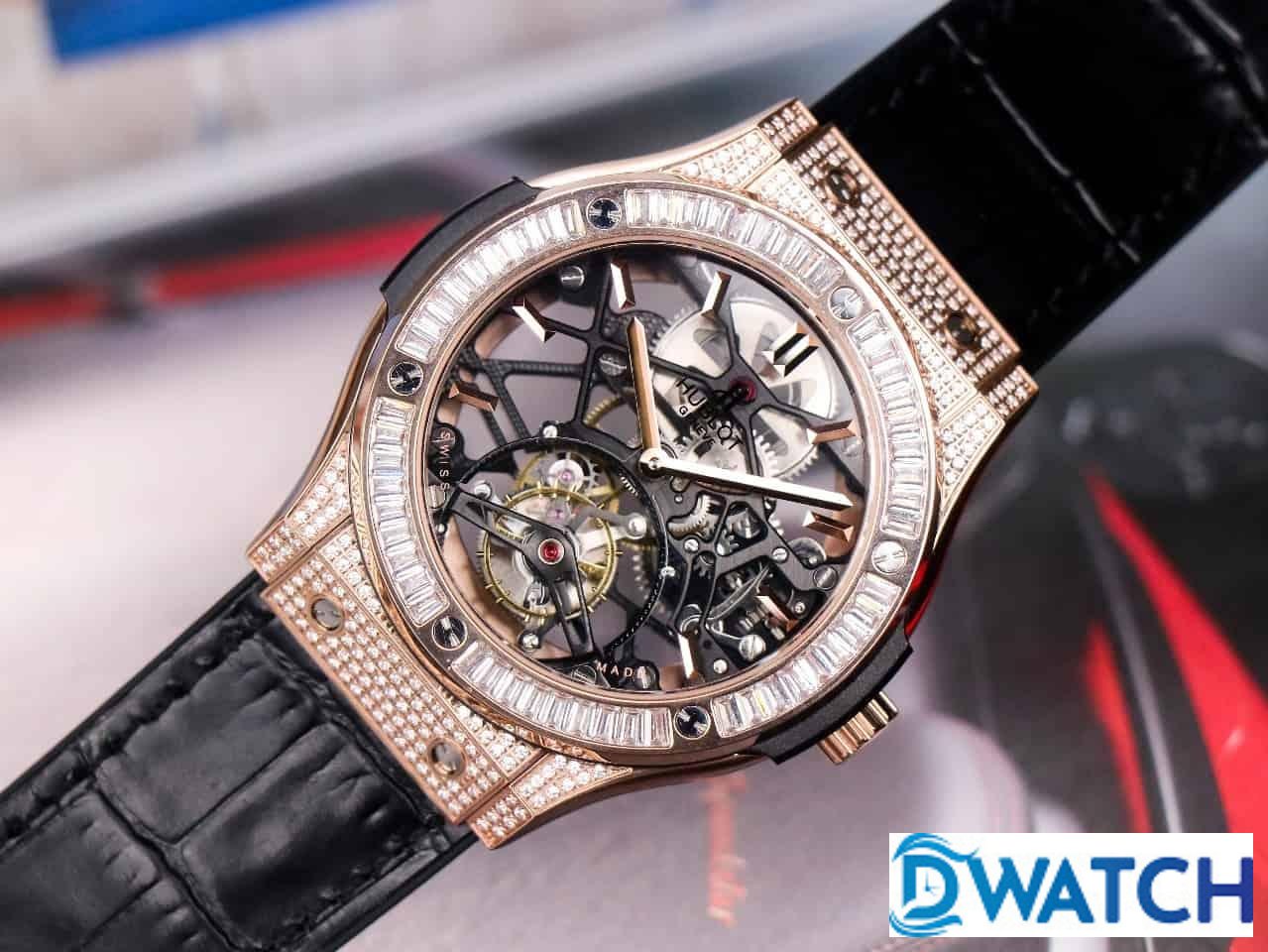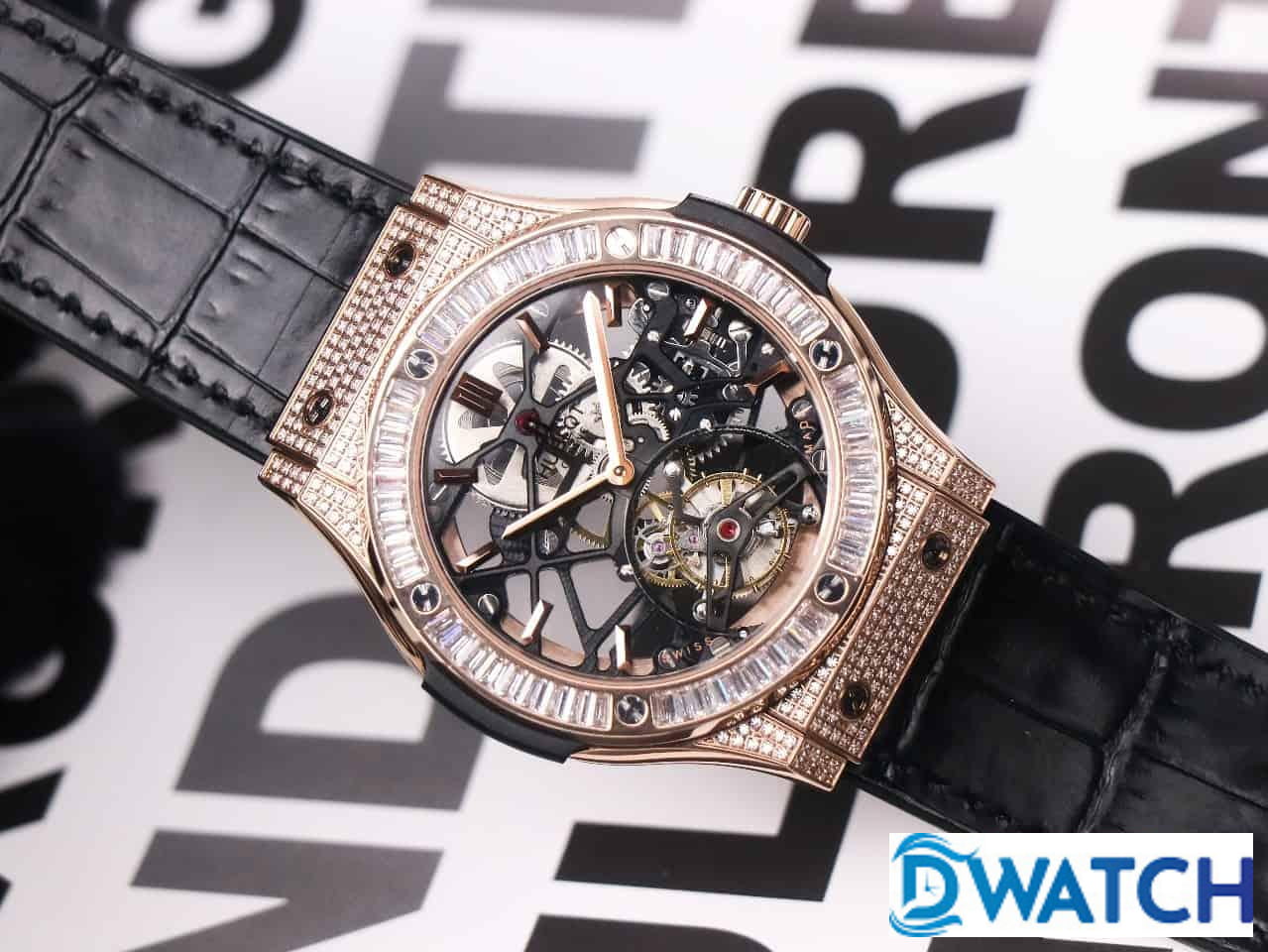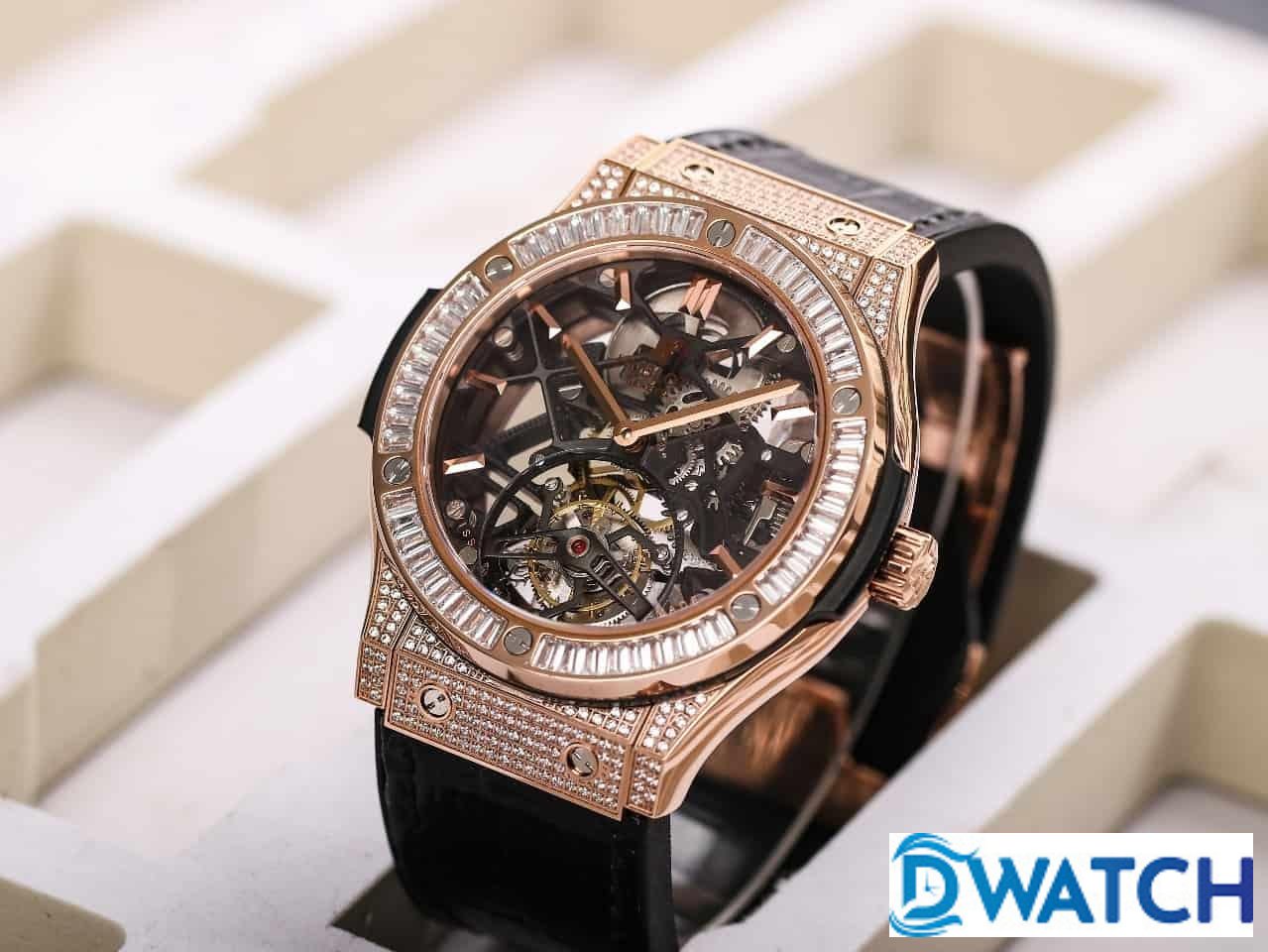 ĐỒNG HỒ HUBLOT NAM ĐÍNH FULL ĐÁ DÂY CAO SU BỌC DA REPLICA 1:1 CAO CẤP 42MM