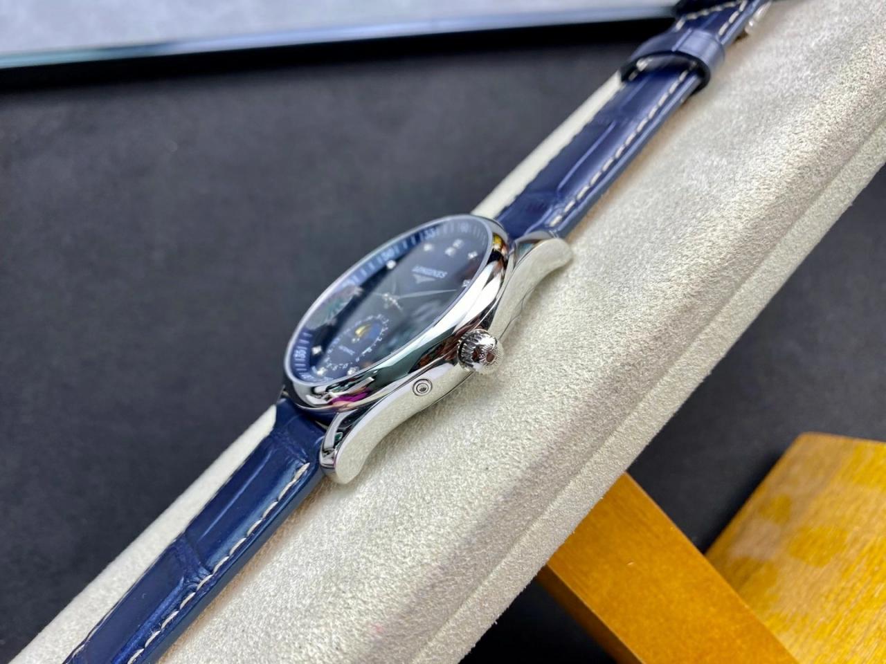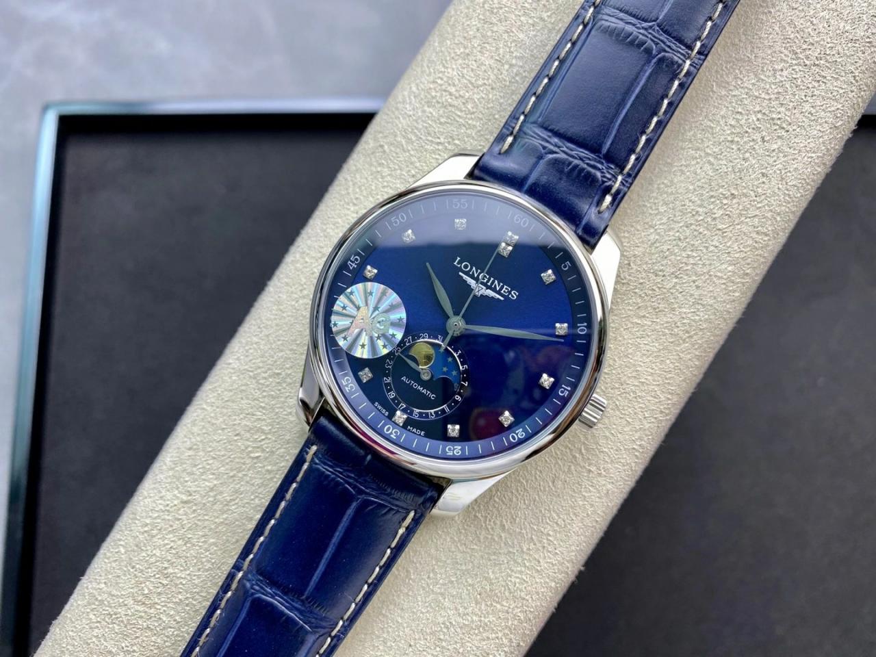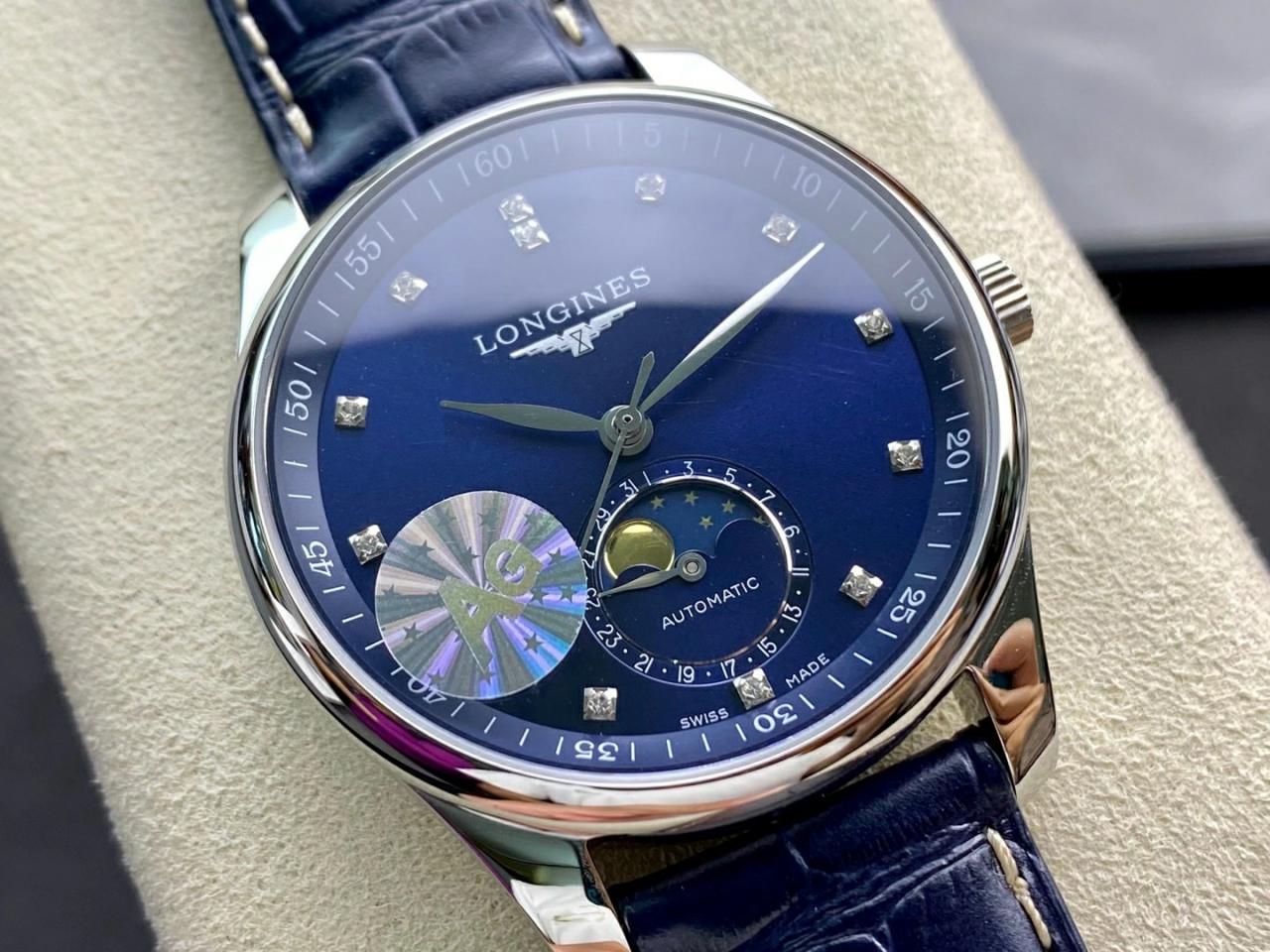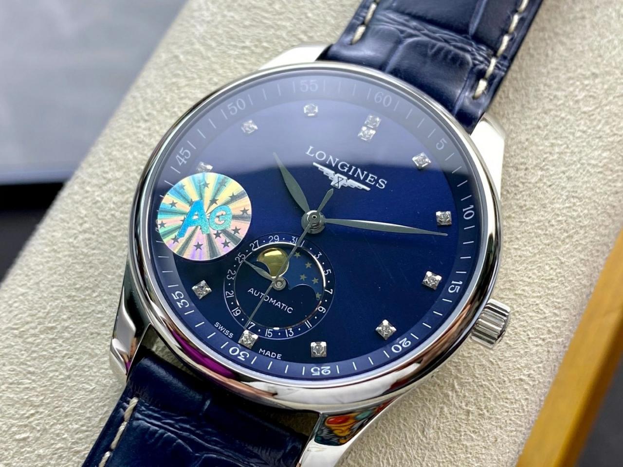 ĐỒNG HỒ LONGINES MASTER MOONPHASE L2.909.4.97.6 FAKE 1:1 NAM CỌC SỐ ĐÍNH ĐÁ 40MM