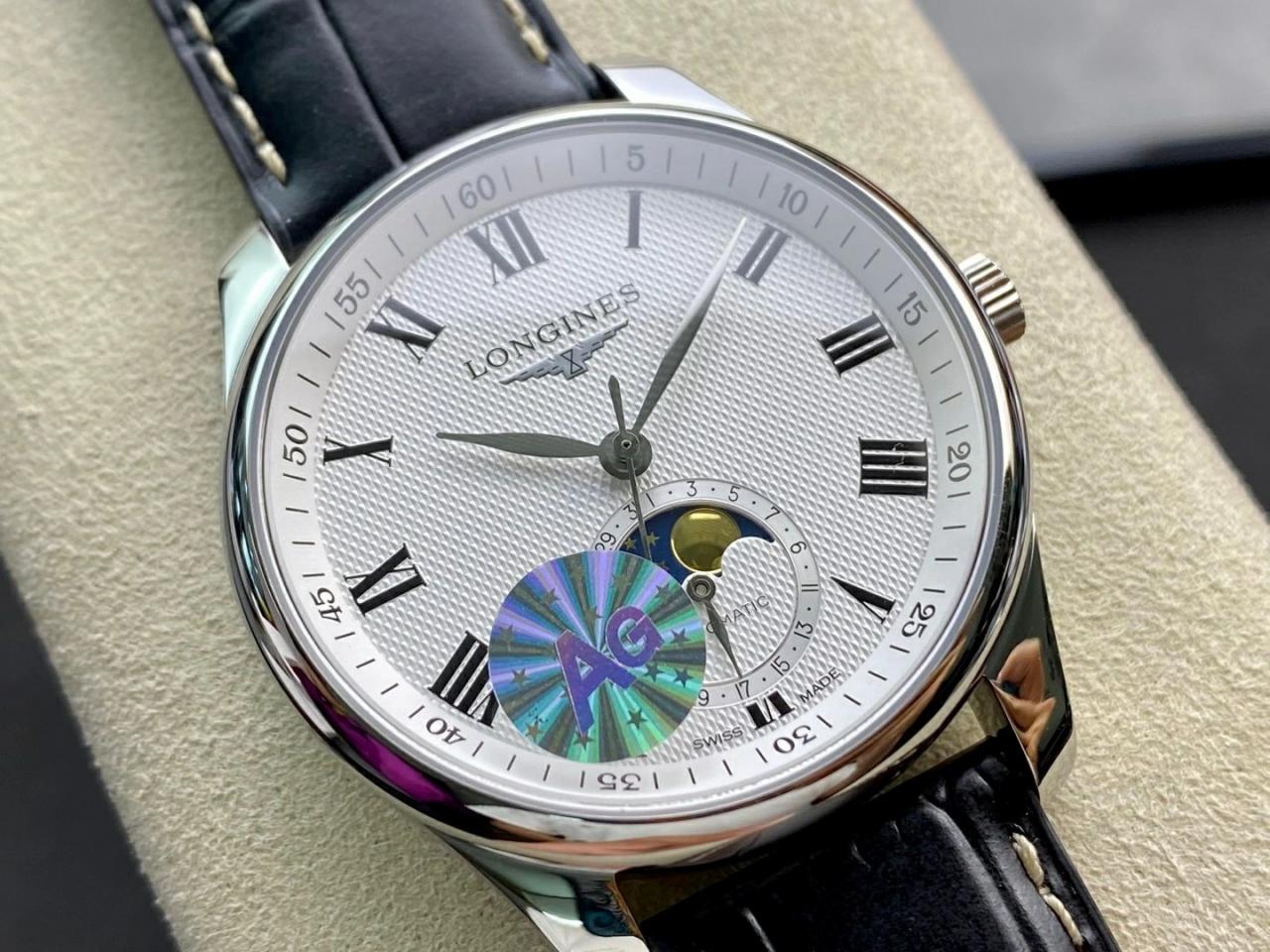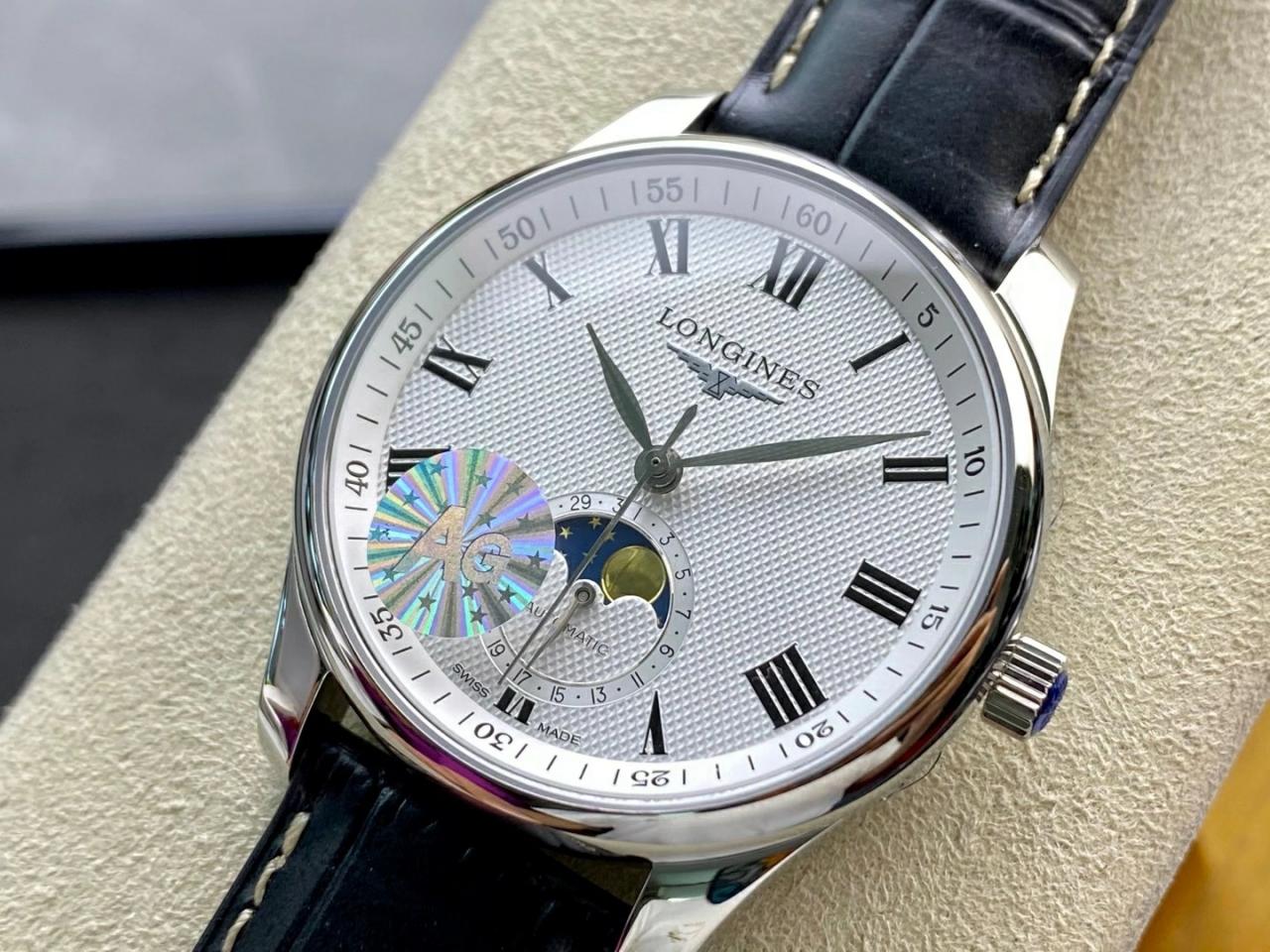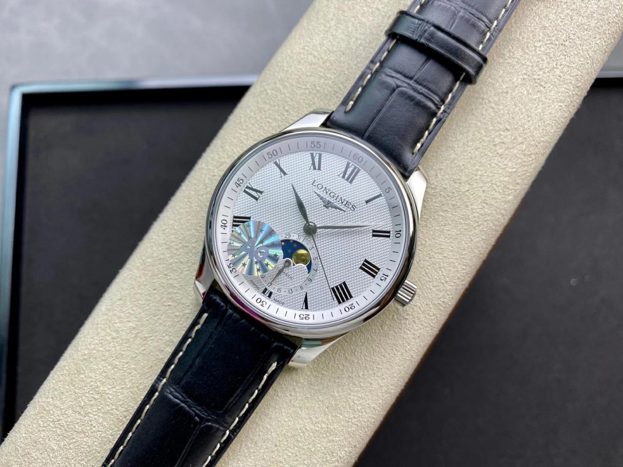 ĐỒNG HỒ LONGINES MASTER MOONPHASE L2.909.4.97.6 FAKE 1:1 NAM CỌC SỐ LA MÃ 40MM