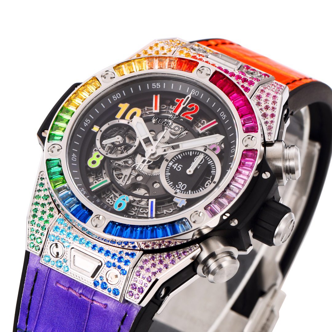 ĐỒNG HỒ NAM HUBLOT BIG BANG REPLICA CAO CẤP ĐÍNH ĐÁ 7 SẮC CẦU VỒNG 45MM