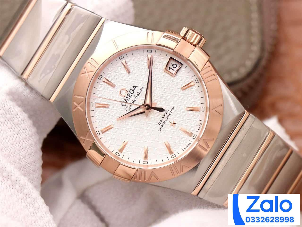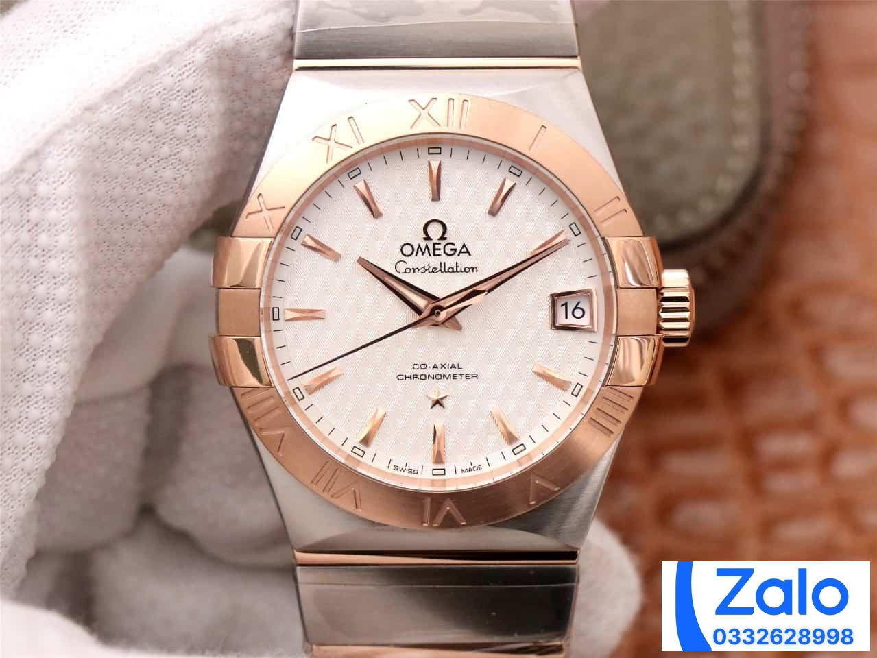 ĐỒNG HỒ NAM OMEGA CONSTELLATION FAKE 1:1 NHÀ MÁY VS FACTORY VÀNG HỒNG 38MM