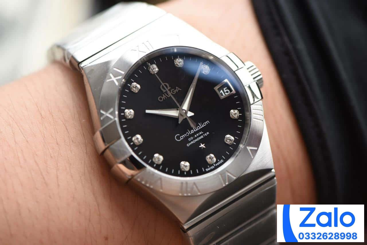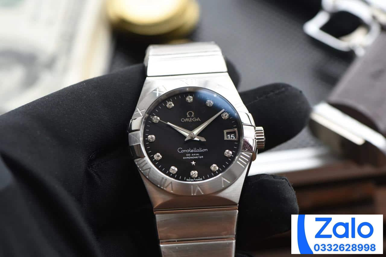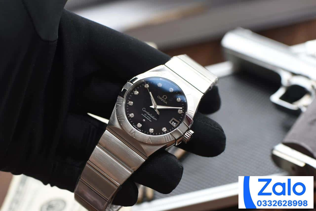ĐỒNG HỒ NAM OMEGA CONSTELLATION SUPER FAKE NHÀ MÁY VS CỌC ĐÍNH ĐÁ 38MM