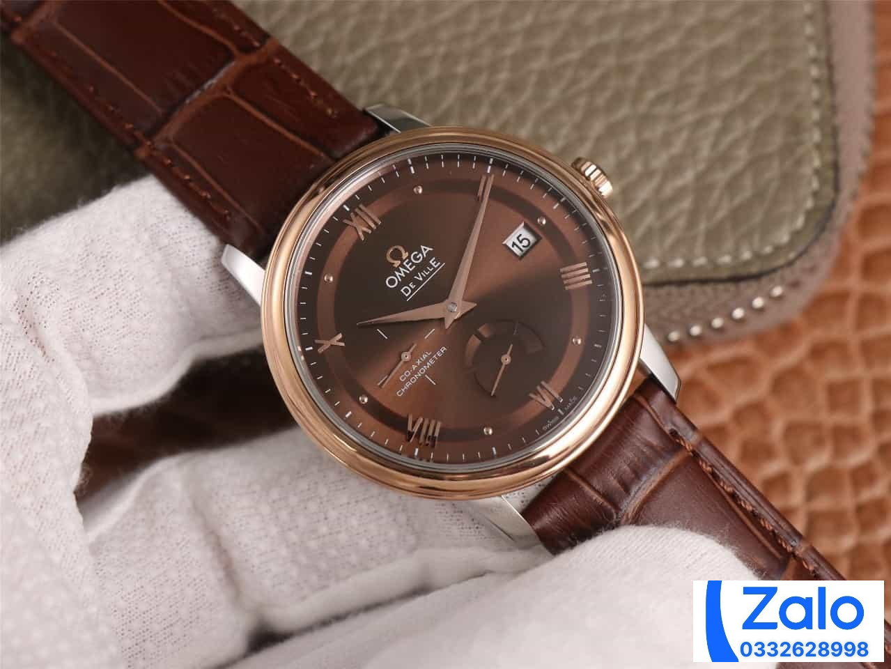 ĐỒNG HỒ NAM OMEGA DE VILLE FAKE 1:1 NHÀ MÁY AZ FACTORY DÂY DA MẶT NÂU 40MM