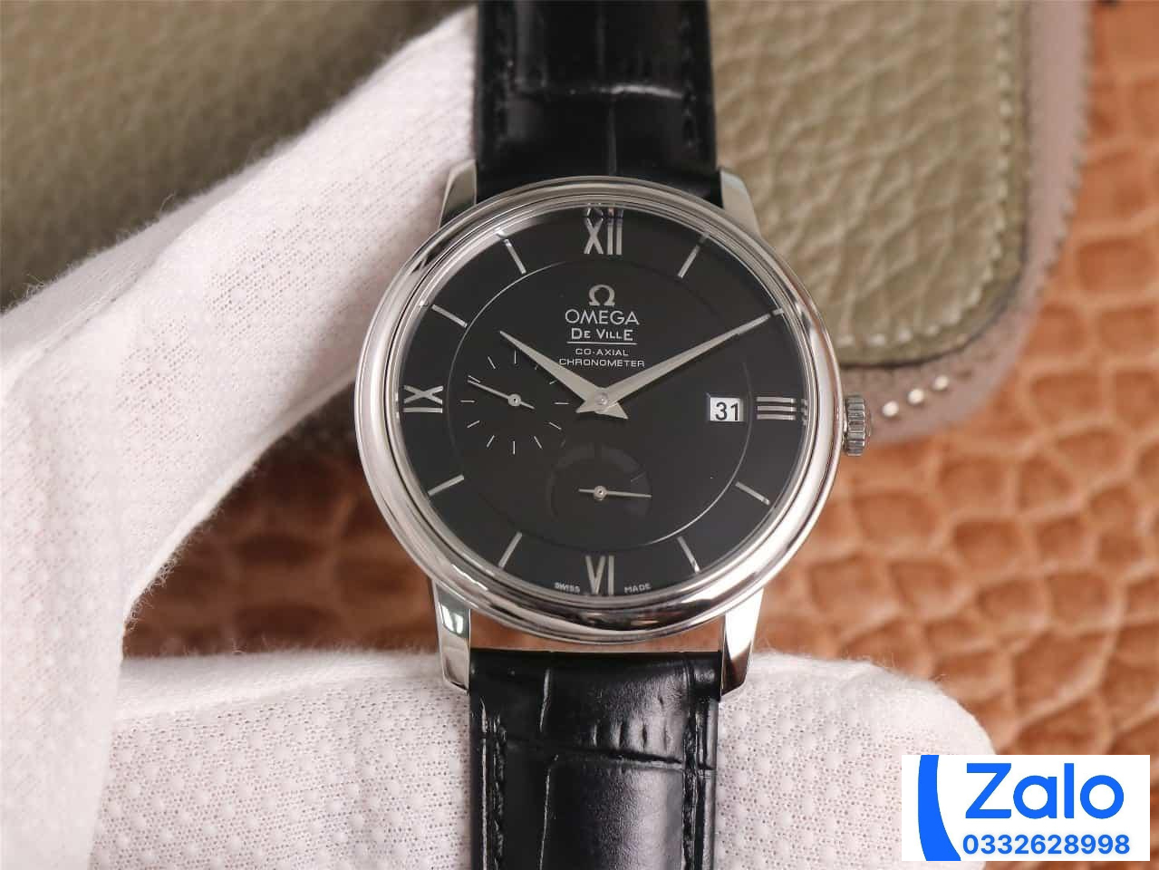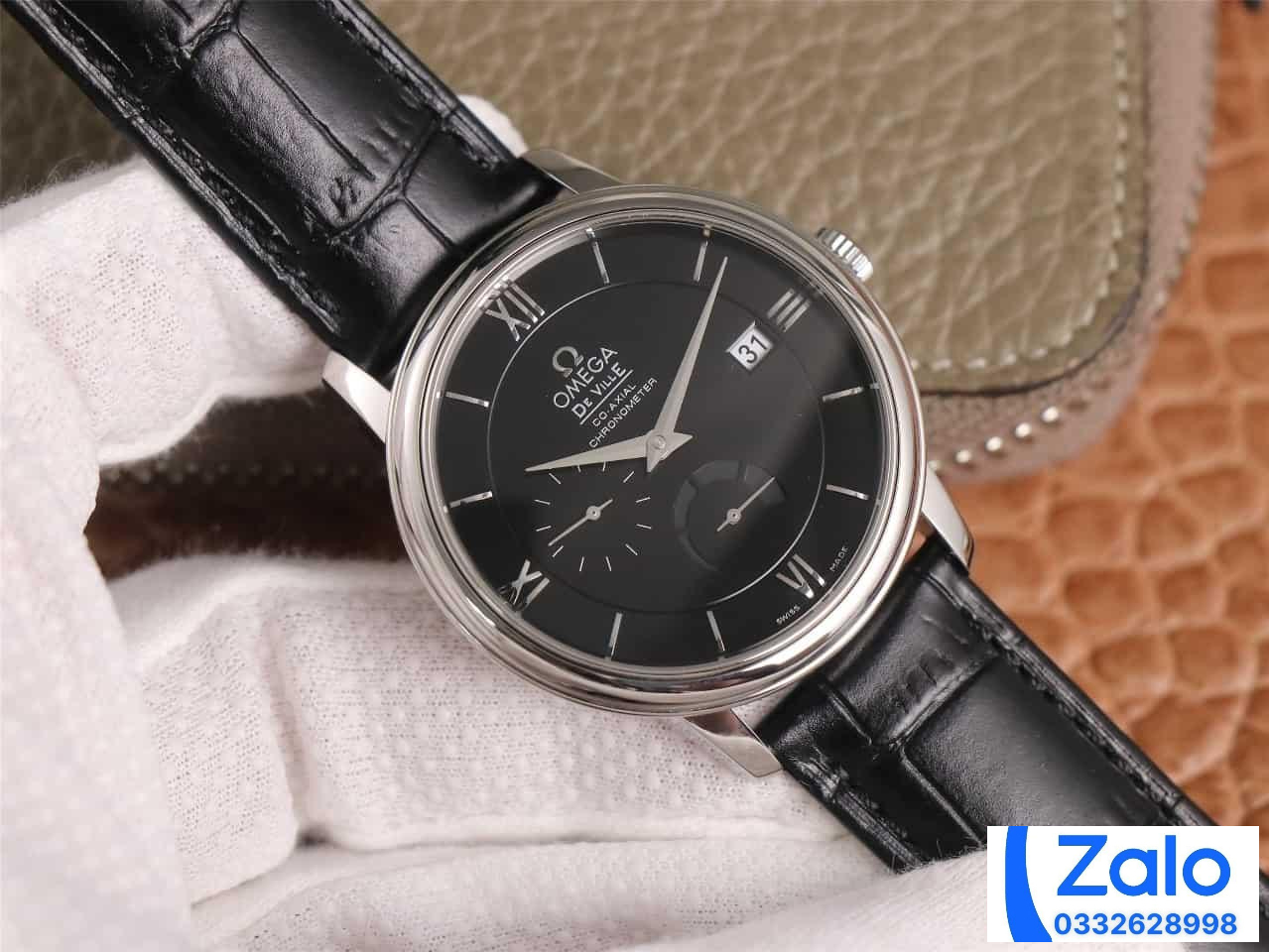 ĐỒNG HỒ NAM OMEGA DE VILLE FAKE CAO CẤP NHÀ MÁY AZ DÂY DA MẶT SỐ ĐEN 40MM