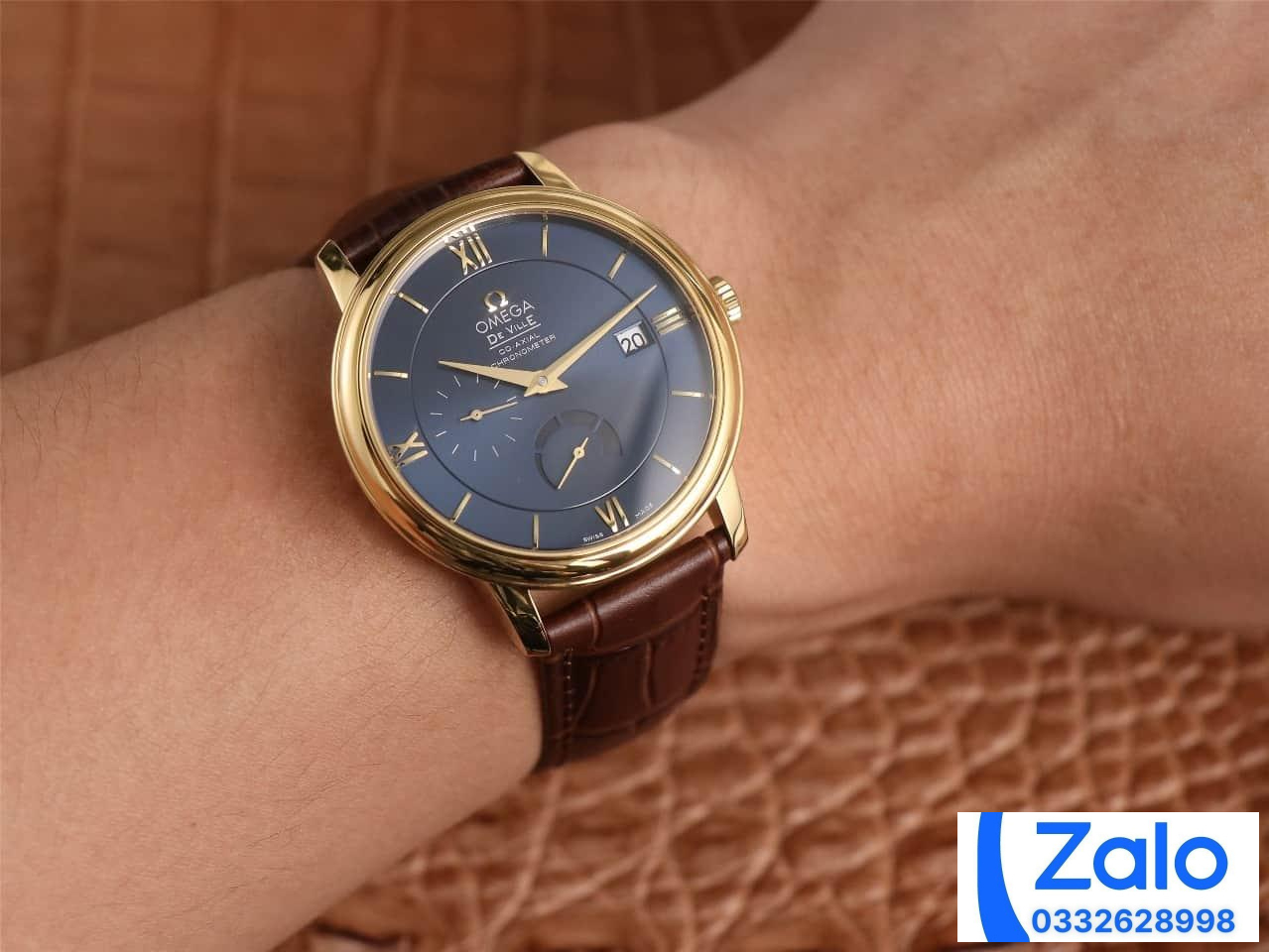 ĐỒNG HỒ NAM OMEGA DE VILLE SUPER FAKE NHÀ MÁY AZ DÂY DA MẶT GHI 40MM