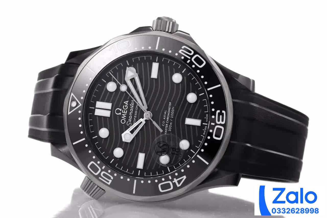 ĐỒNG HỒ NAM OMEGA SEAMASTER FAKE CAO CẤP NHÀ MÁY OM DÂY CAO SU ĐEN 45MM