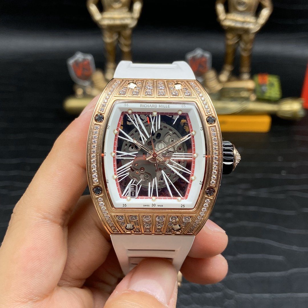 ĐỒNG HỒ NAM RICHARD MILLE RM010 SUPER FAKE ĐÍNH ĐÁ VÀNG HỒNG 41MM