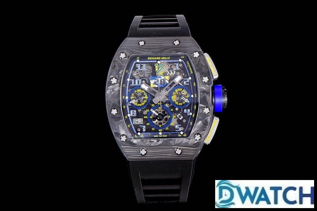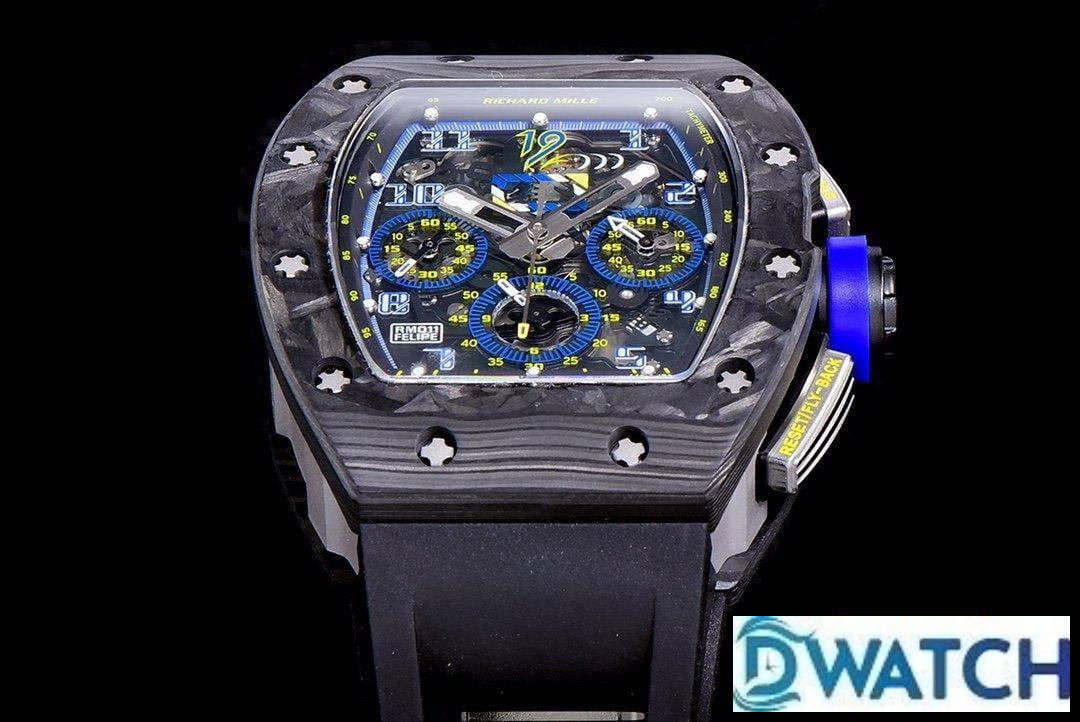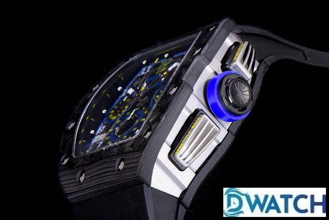 ĐỒNG HỒ NAM RICHARD MILLE RM011 REPLICA NHÀ MÁY KV NÚM MÀU XANH 45MM