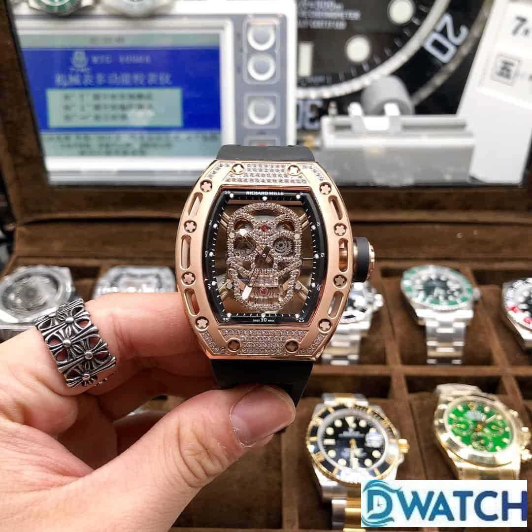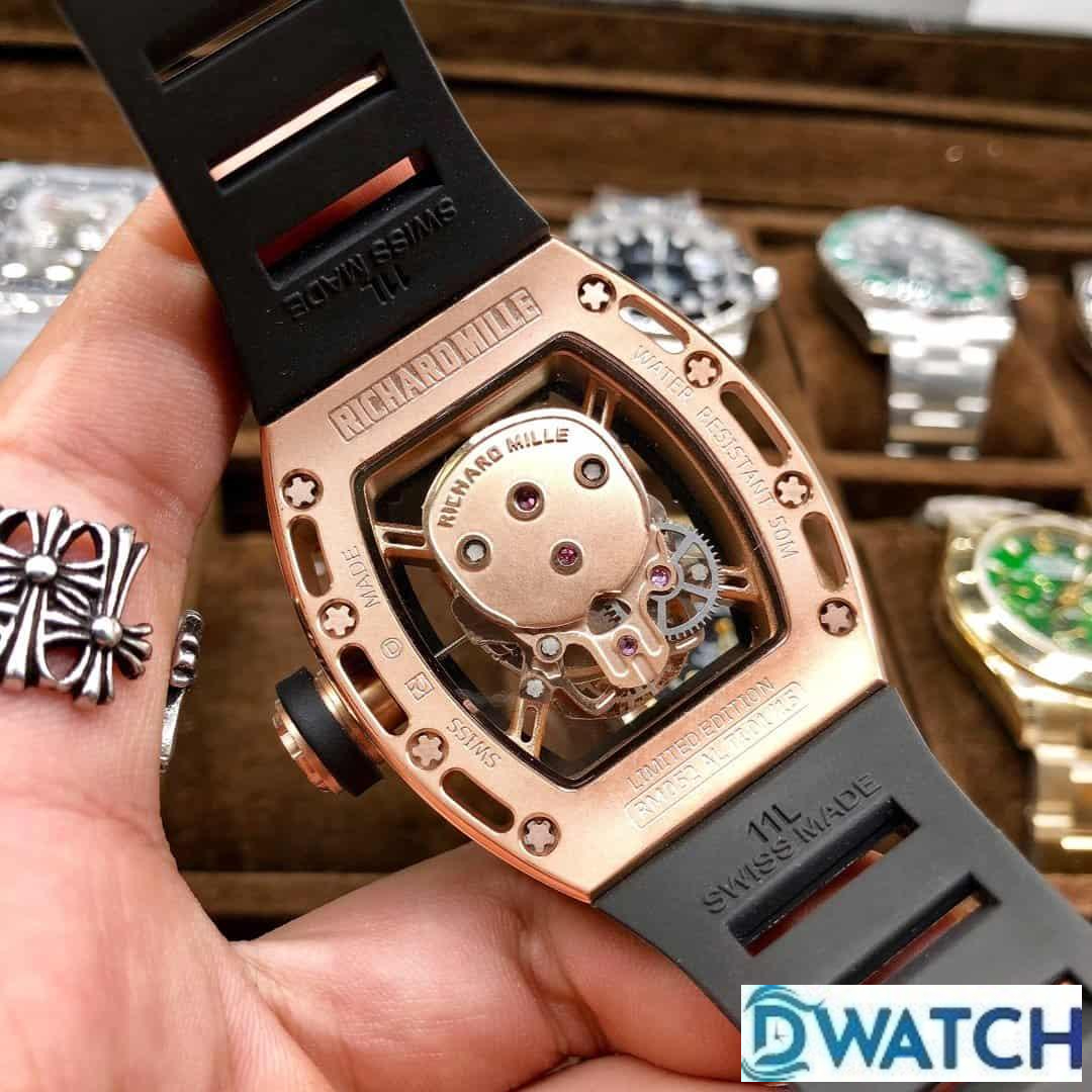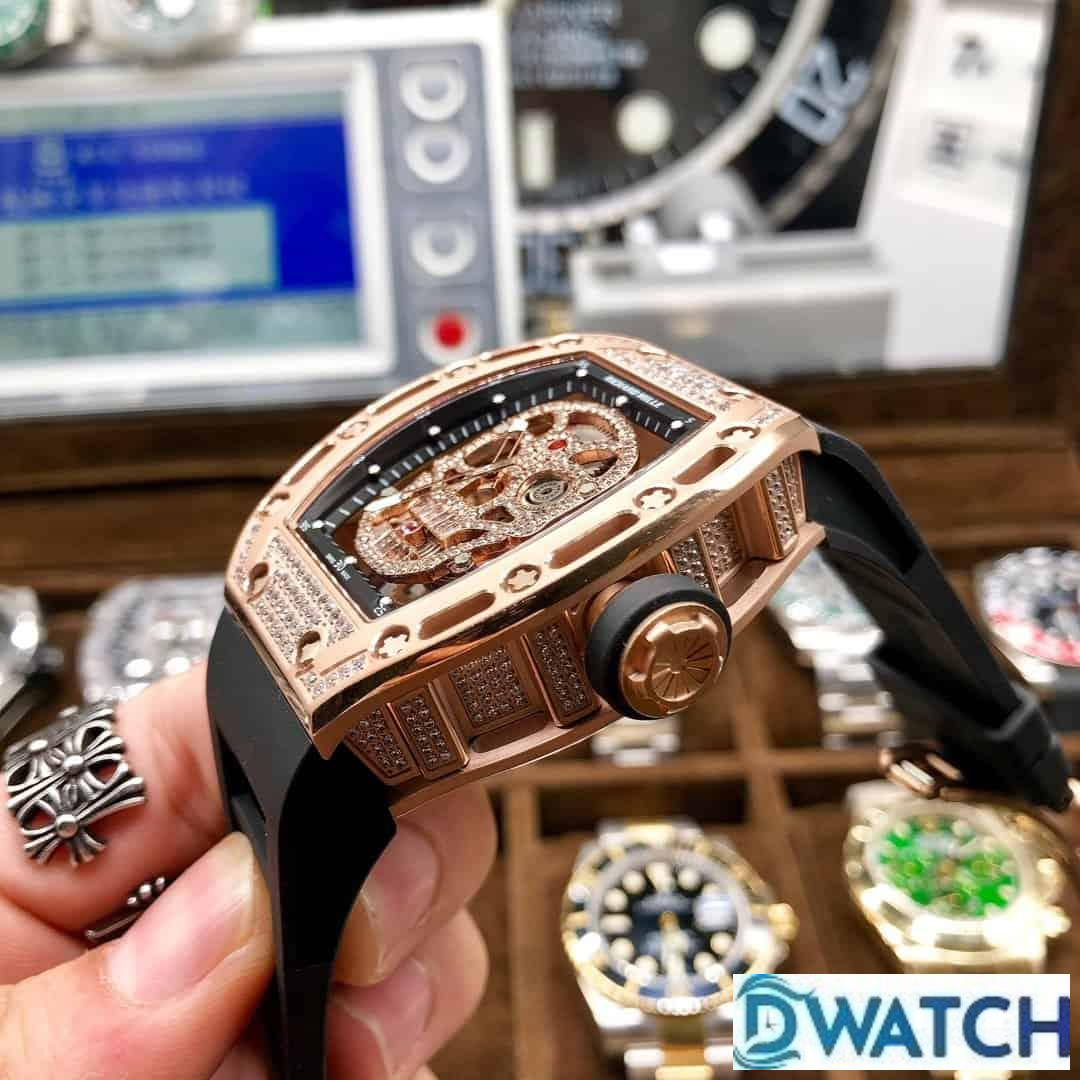 ĐỒNG HỒ NAM RICHARD MILLE RM052-01 FAKE 1:1 MẶT SỐ ĐÍNH ĐÁ VÀNG HỒNG 43MM