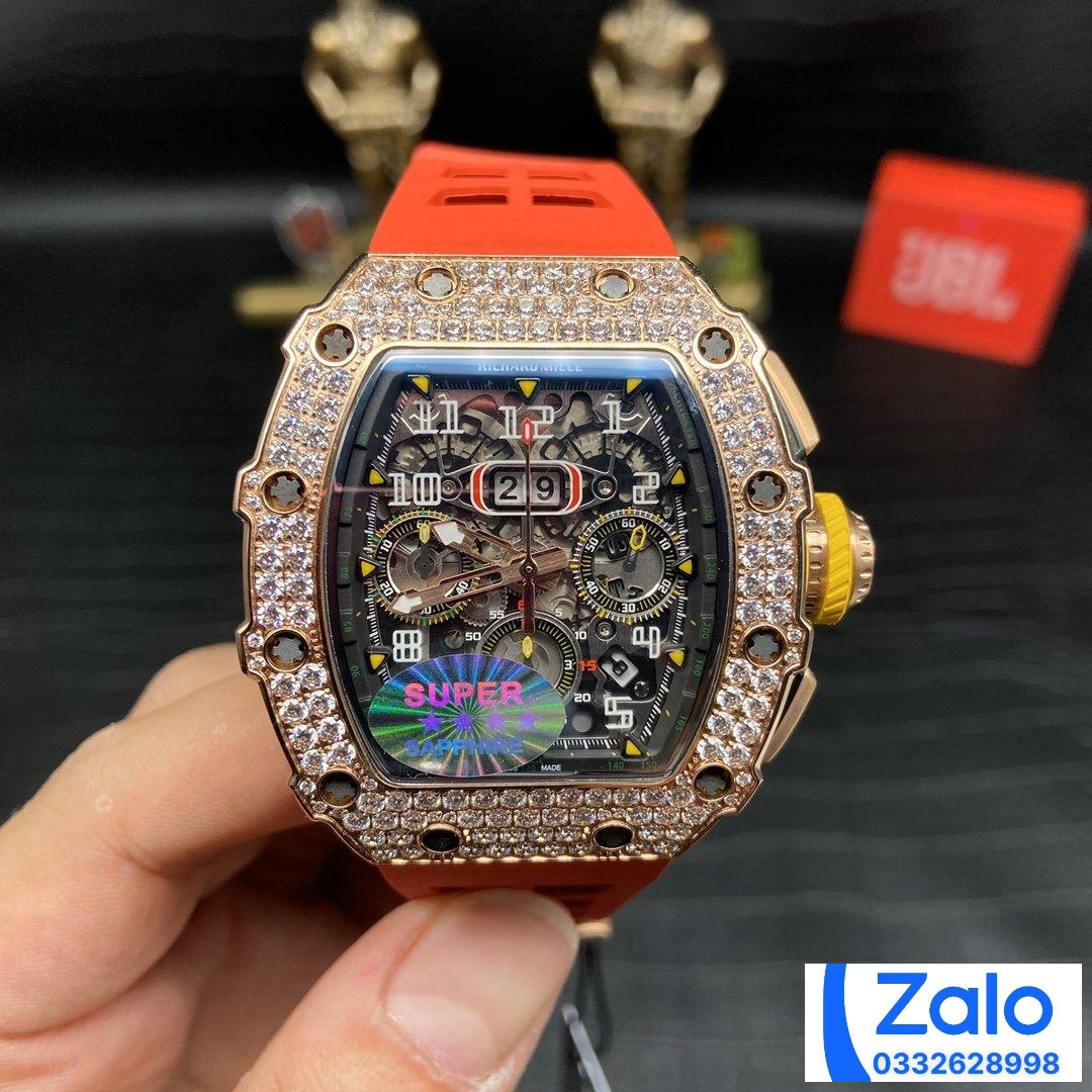 ĐỒNG HỒ NAM RICHARD MILLE RM11-03 REPLICA NHÀ MÁY Z ĐÍNH ĐÁ VÀNG HỒNG 44MM