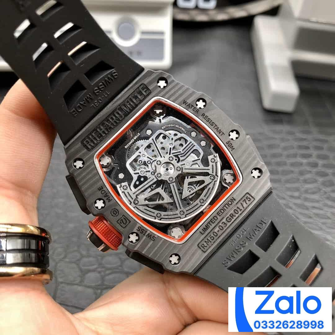 ĐỒNG HỒ NAM RICHARD MILLE RM50-03 SUPER FAKE DÂY CAO SU LỘ CƠ 40MM