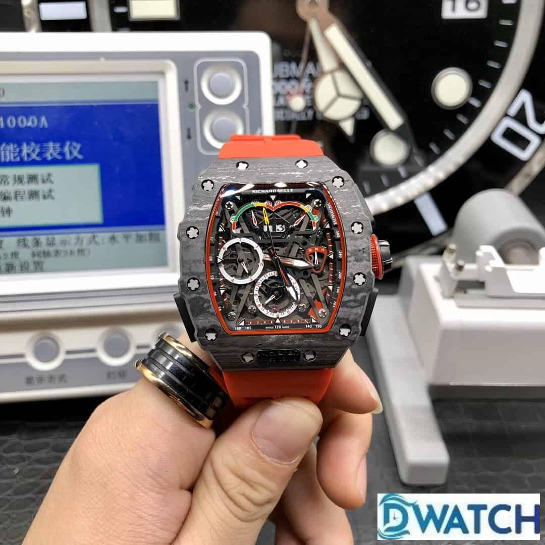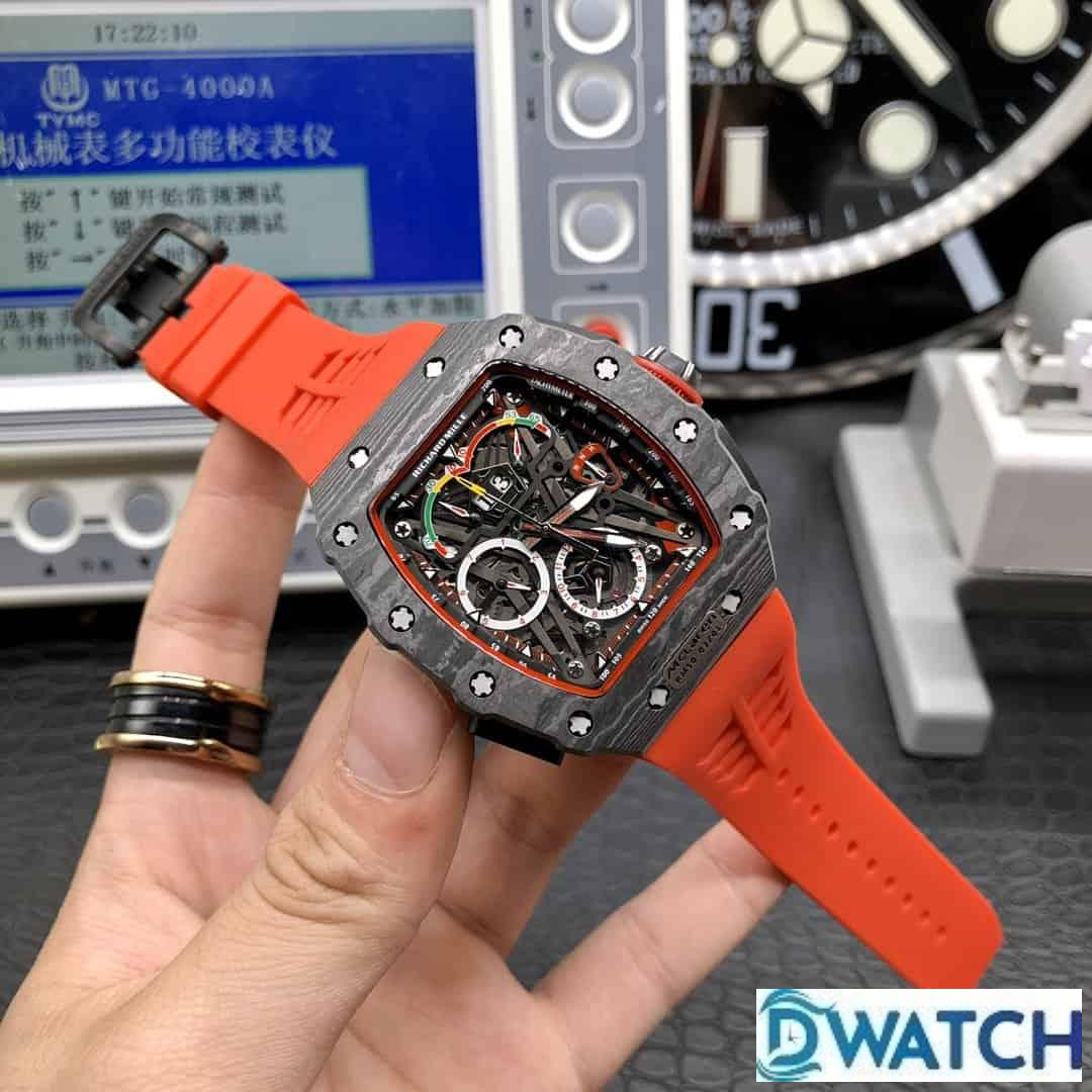 ĐỒNG HỒ NAM RICHARD MILLE RM50-03 FAKE CAO CẤP DÂY CAO SU CAM 40MM