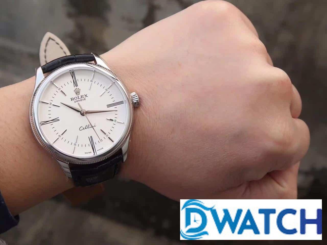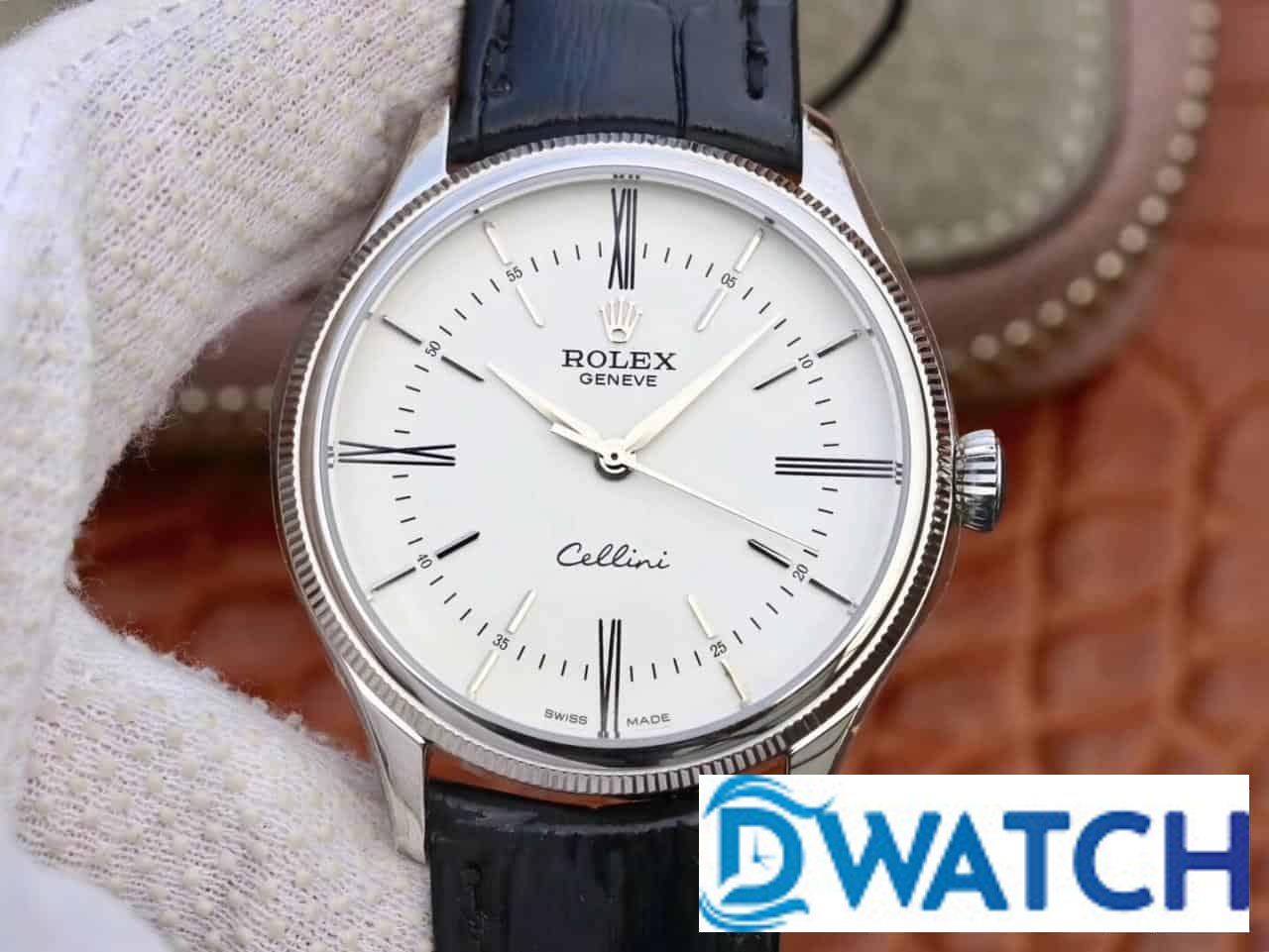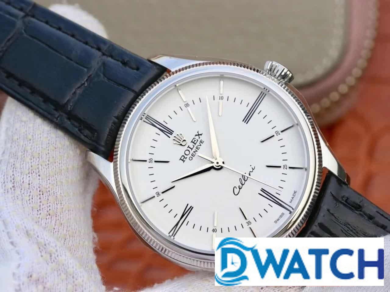 ĐỒNG HỒ NAM ROLEX CELLINI DÂY DA MẶT TRẮNG FAKE CAO CẤP 39MM