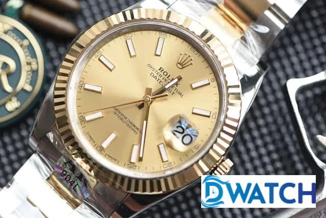 ĐỒNG HỒ NAM ROLEX DATEJUST DÂY KIM LOẠI MÀU DEMI AR FACTORY REPLICA CAO CẤP 41MM