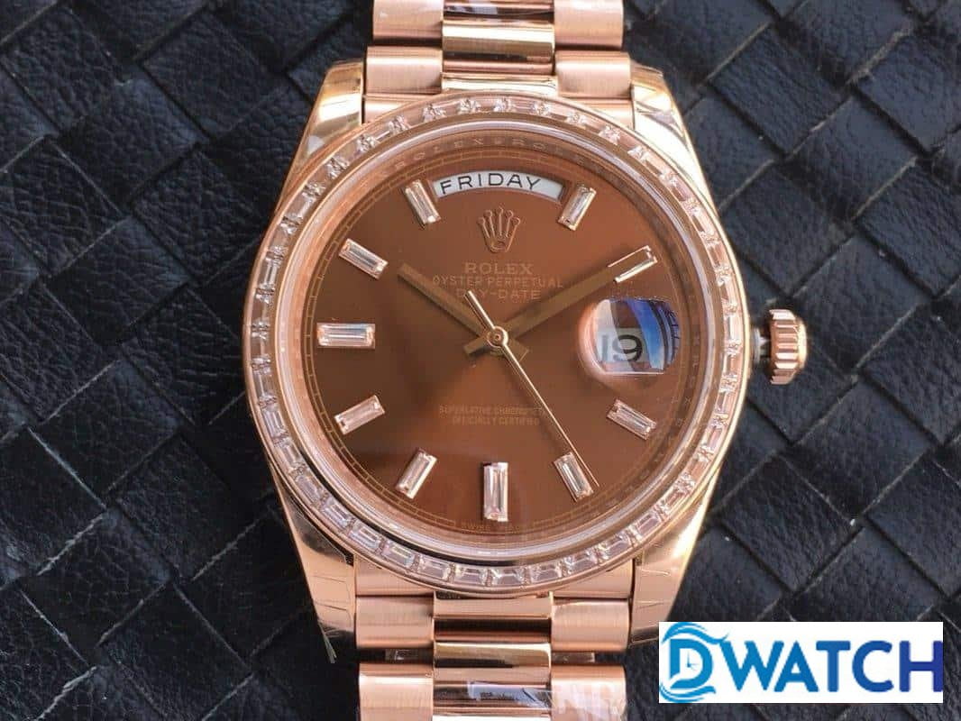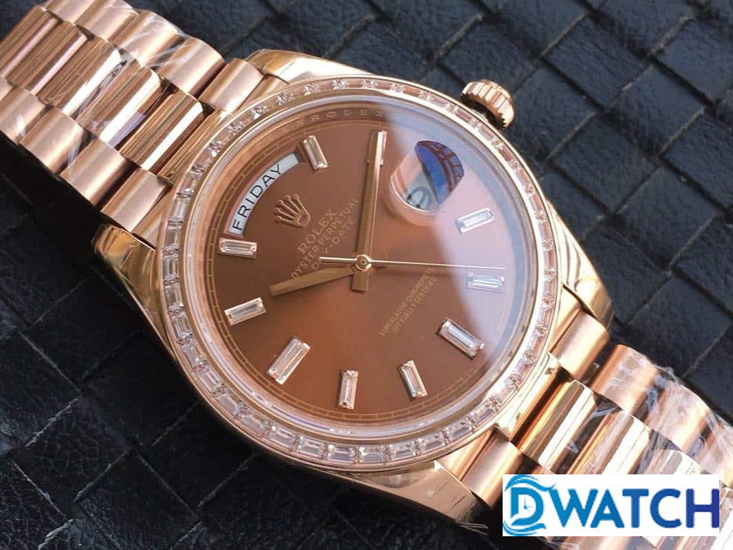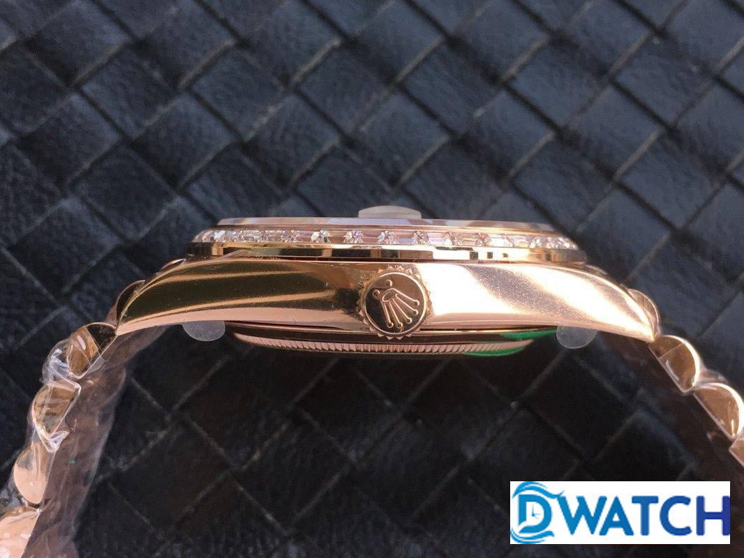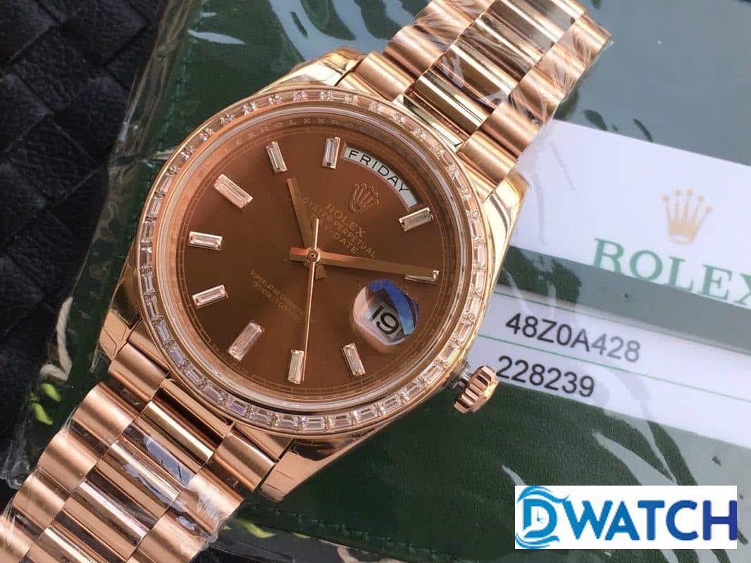 ĐỒNG HỒ NAM ROLEX DAY-DATE DÂY KIM LOẠI ĐÍNH ĐÁ BAGUETTE FAKE 1:1 40MM