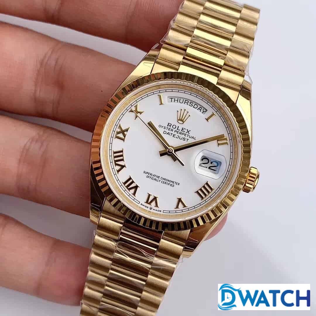 ĐỒNG HỒ NAM ROLEX DAY-DATE DÂY KIM LOẠI MÀU GOLD REPLICA CAO CẤP 36MM