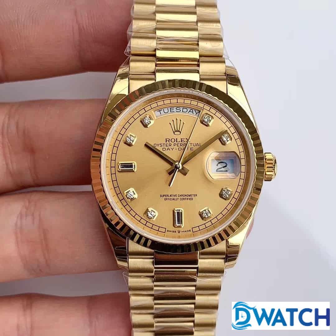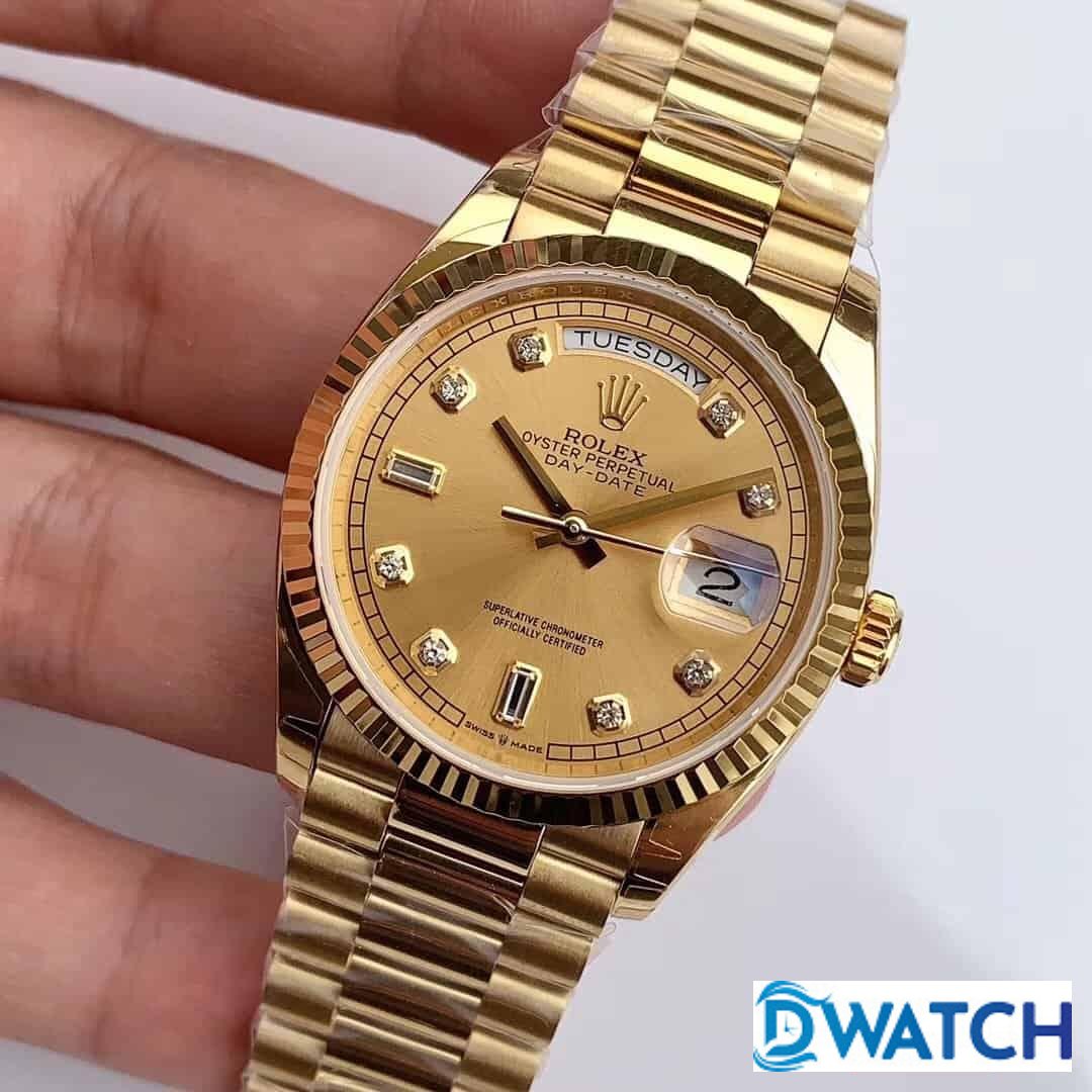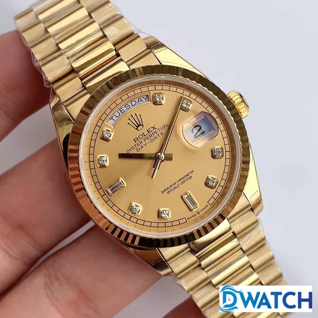 ĐỒNG HỒ NAM ROLEX DAY-DATE MÁY CƠ DÂY KIM LOẠI MÀU GOLD REPLICA CAO CẤP 36MM