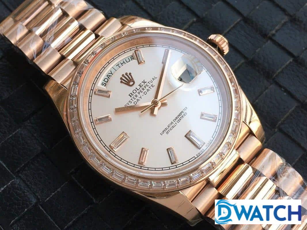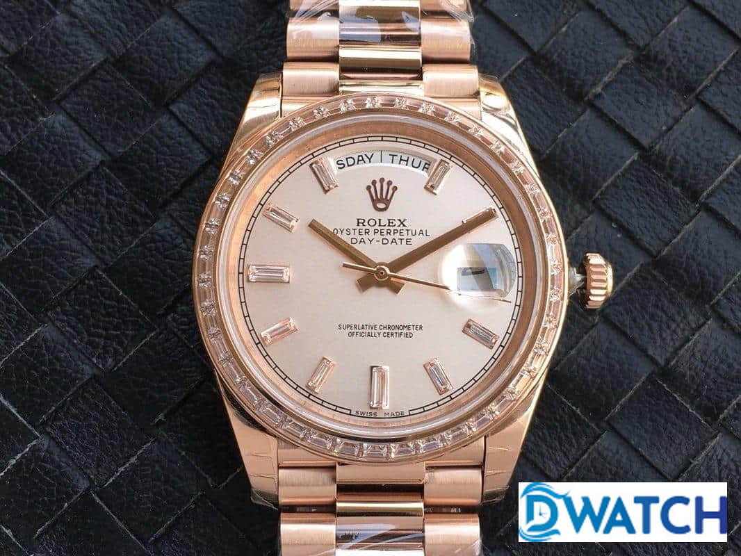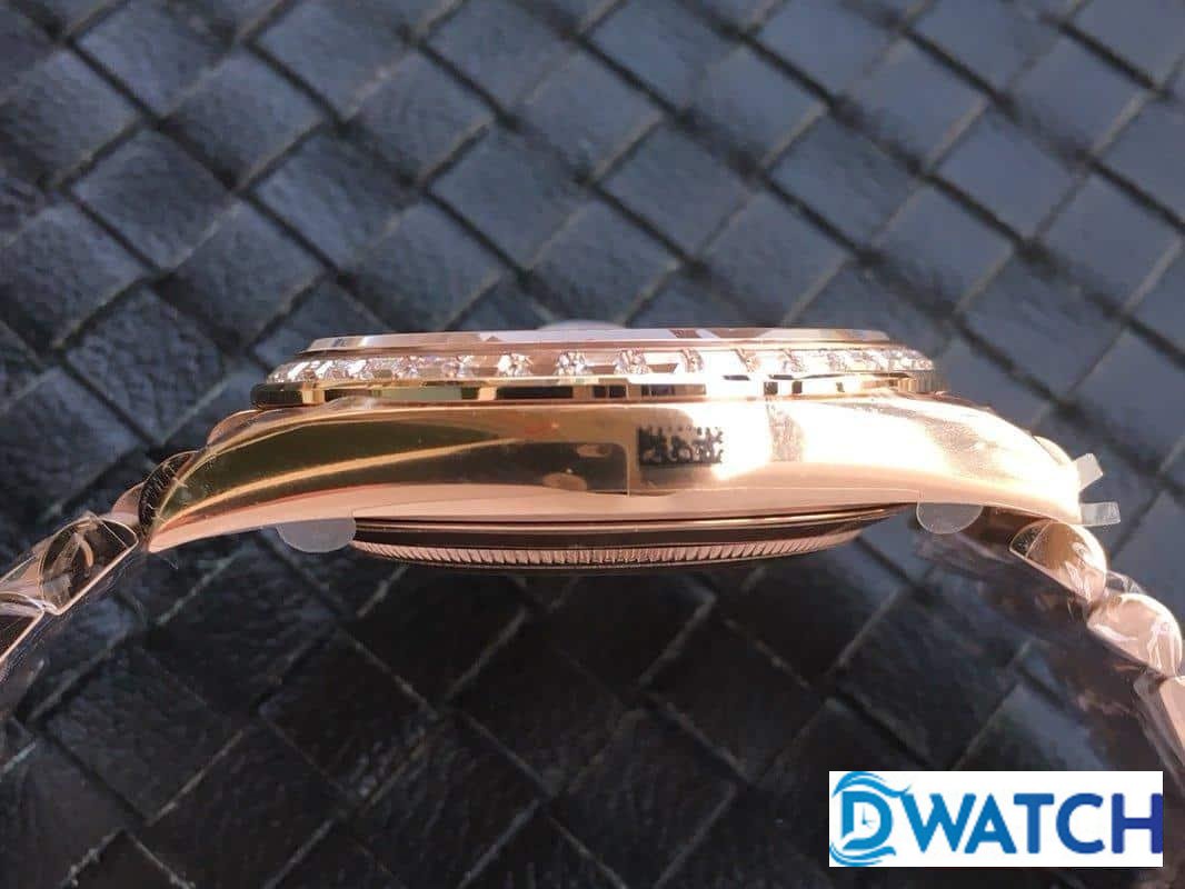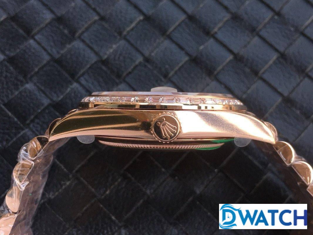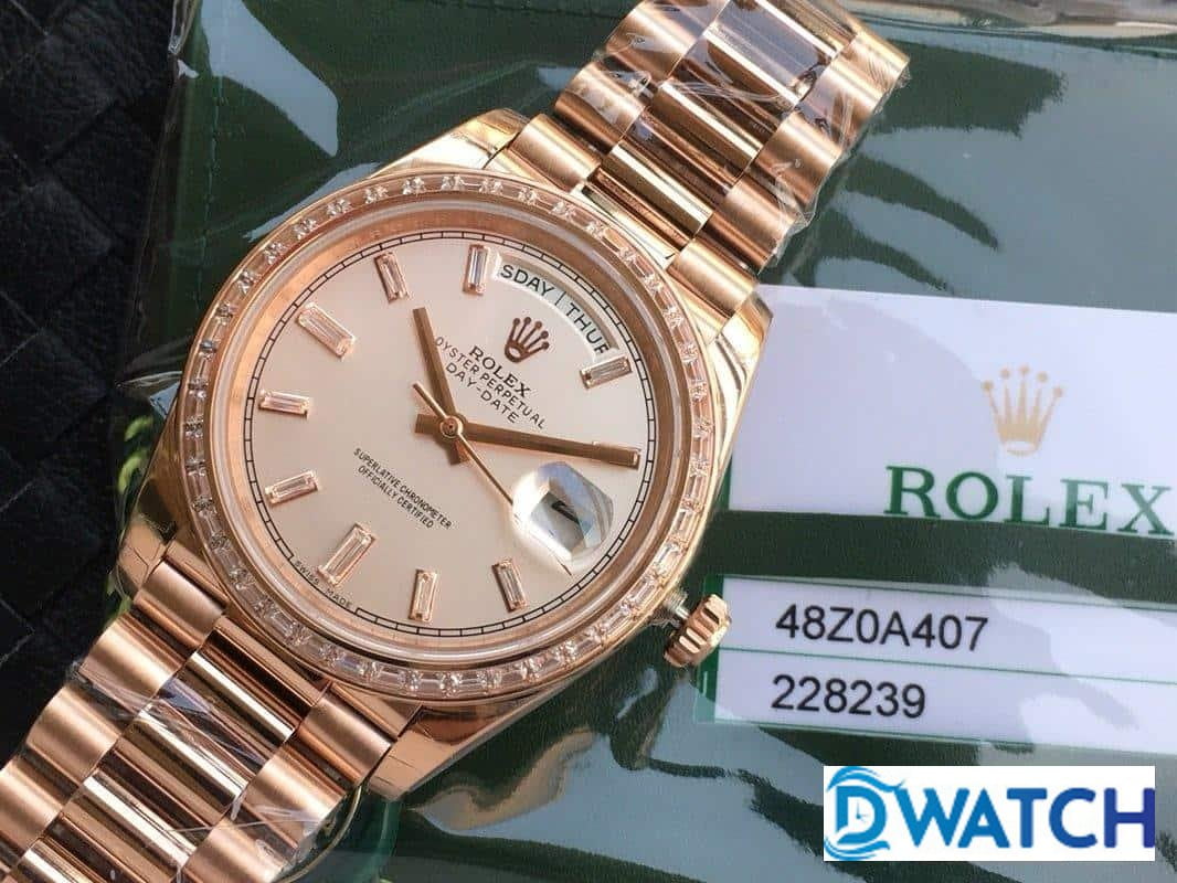 ĐỒNG HỒ NAM ROLEX DAY-DATE MÁY CƠ ĐÍNH ĐÁ ROSE GOLD FAKE CAO CẤP 40MM